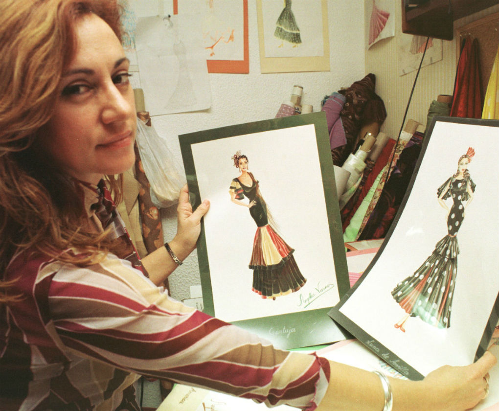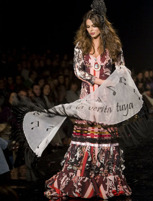 La diseñadora Ángeles Verano en su desfile de moda flamenca en SIMOF en 2012.