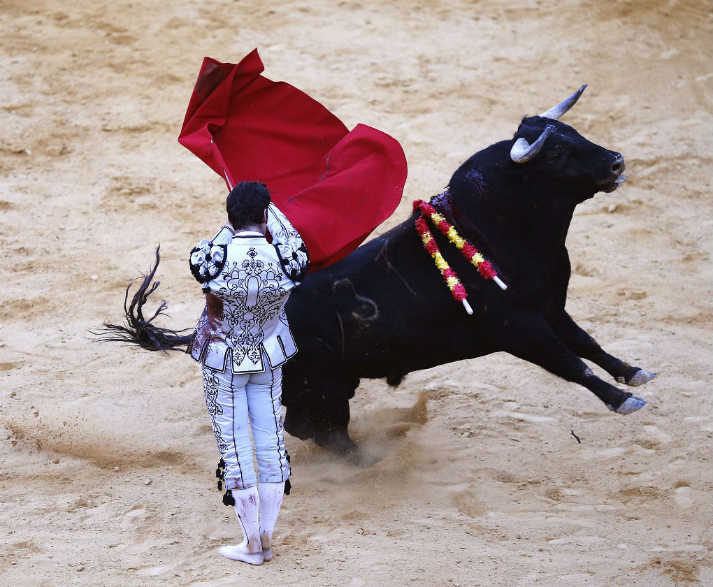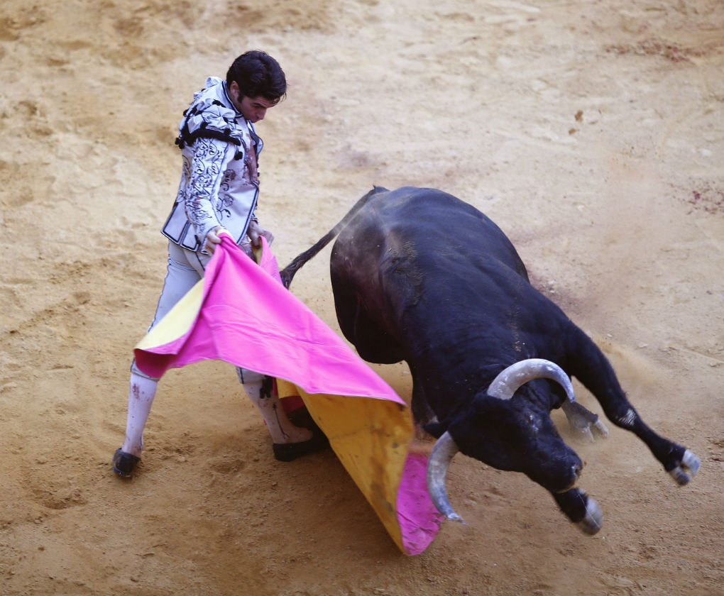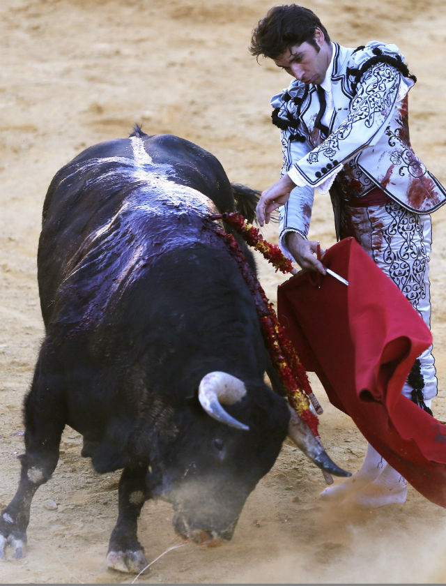 Cayetano Rivera en la Goyesca de Ronda 2016 con traje de luces diseñado por Eva González. EFE