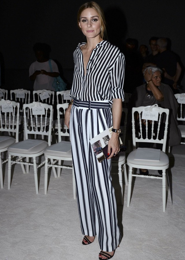 Si Olivia Palermo lo luce, ¿por qué no seguirla? Combinación de pantalón y camisa de rayas de diferentes tamaños. Funciona. AFP
