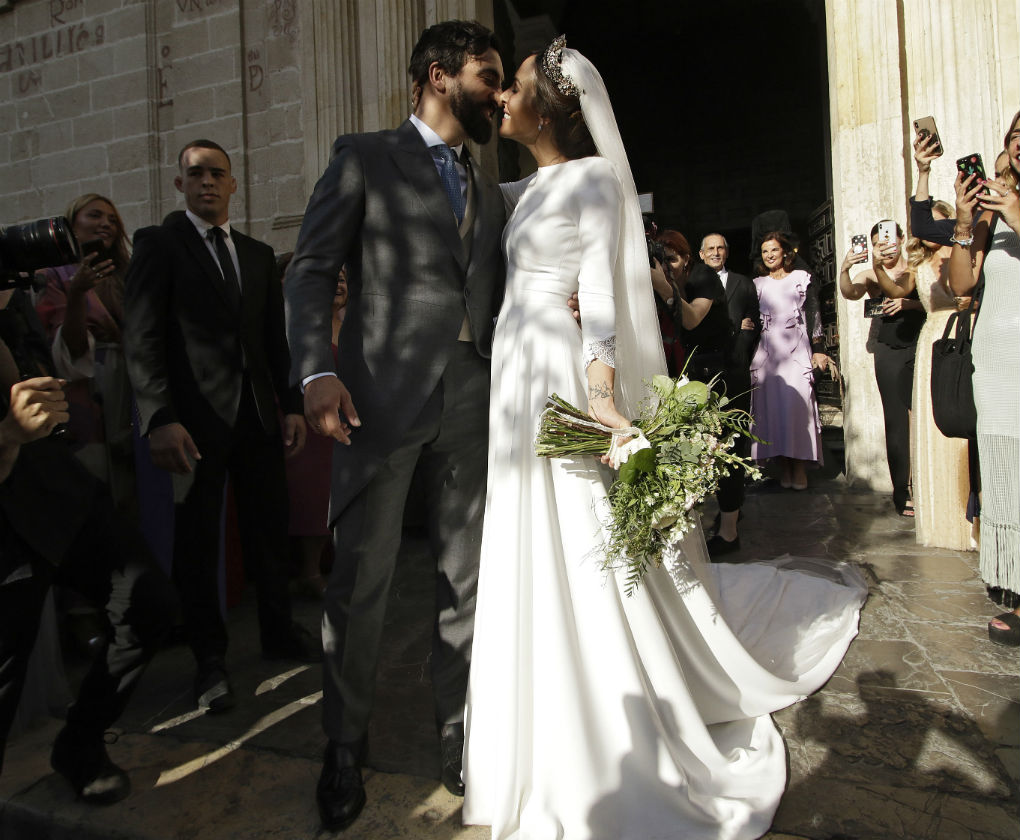 Los novios, Rocío Osorno y Coco Robatto, a su salida del Sagrario de la Catedral de Sevilla.