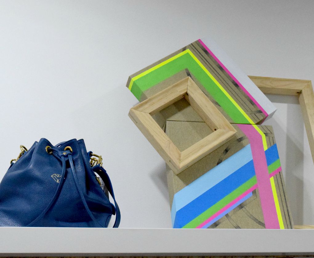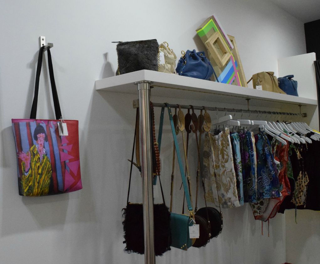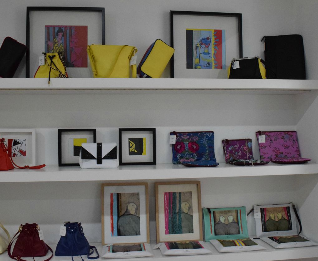 Los bolsos de Carmen Berdonces y las obras de Rubén Fernández se exponen juntos en la tienda