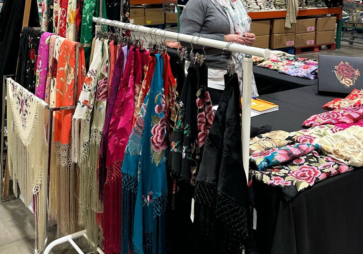 Se trata de la firma Nava, especializada en mantones, mantoncillos, chaquetas de mantón, chales y mantillas, tanto para ocasiones especiales como bodas y bailes como para la Feria de Abril de Sevilla y ahora, ha querido aprovechar la oportunidad de que se están acercando esas semanas para abrir un pequeño stand en Costco.