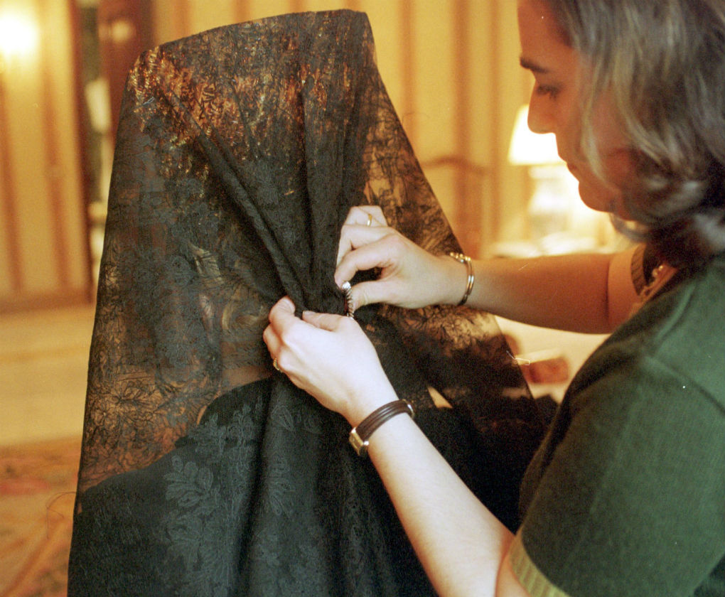 La modelo Raquel Rodríguez con mantilla.