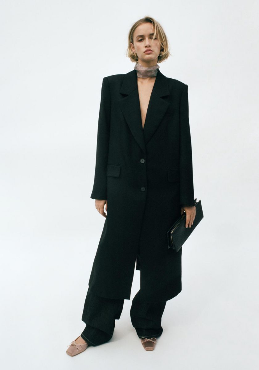 Aunque parezca oversize, lo cierto es que ahora se llevan mucho los abrigos largos y más si son con hombreras. Este tipo de estilo estiliza mucho la figura, son elegantes y ayudan a crear un efecto de sofisticación que queda genial. Este por ejemplo de Zara con cuello solapa y manga larga, es ideal para esta temporada.