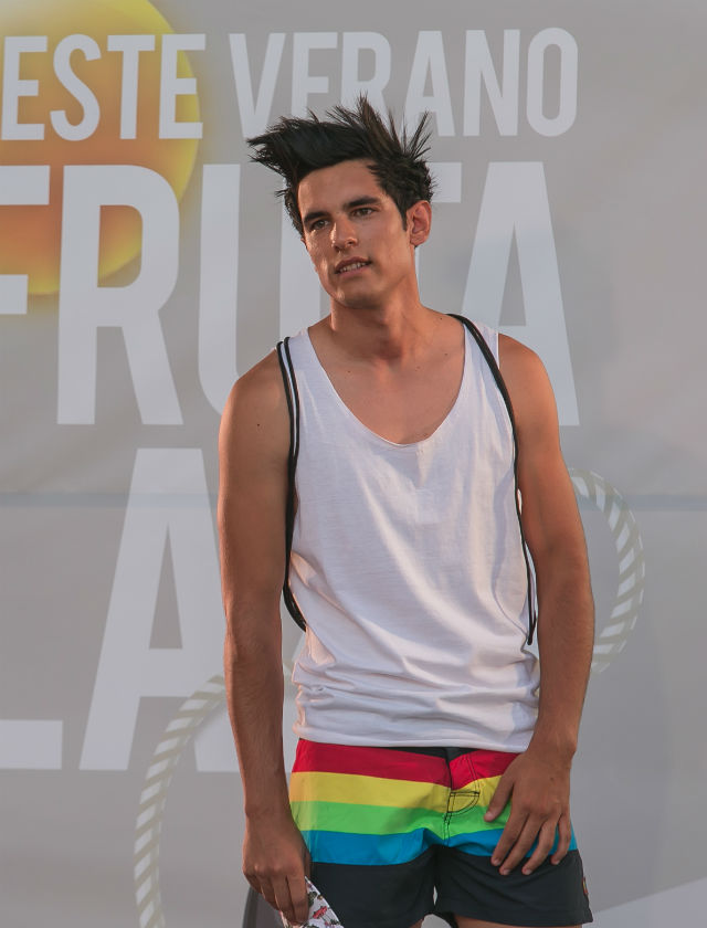 Modelo de Álvaro Moreno con polo y bañador en amarillo