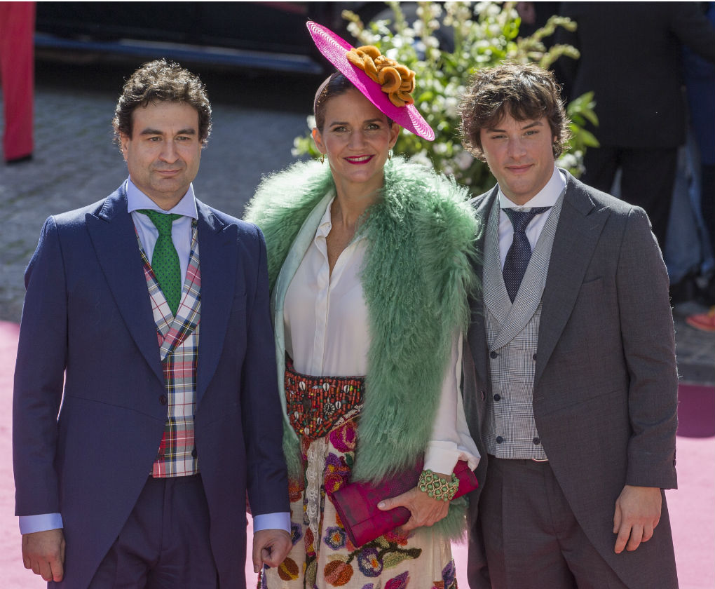 Oda al color de Samantha Vallejo Nágera y Pepe. Jordi optó por un chaqué más clásico. Los jueces de Masterchef apoyan a la presentadora en su boda. Efe