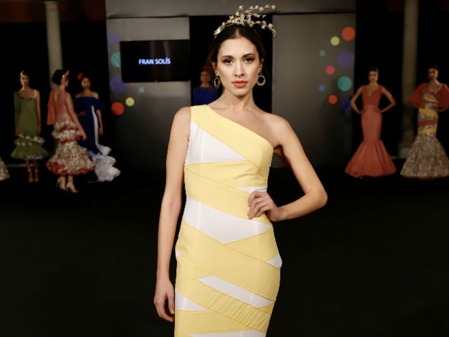 Este año la diseñadora quiere arriesgar y ha rebajado el volumen en algunos de sus vestidos, tanto es así que propone varias piezas con mucha caída, que envuelven y embellecen el cuerpo de la mujer. Destaca algún outfit flamenco inspirado en la década de los 70, punto de partida a la hora de poner en orden las ideas para esta colección.