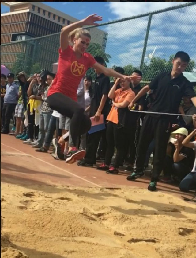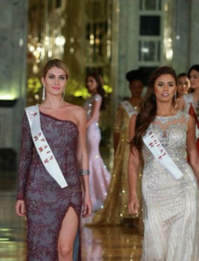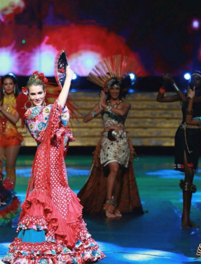 Prueba de talento con traje de flamenca del taller onubense de Manuela Macías para Miss World 2015. Instagram
