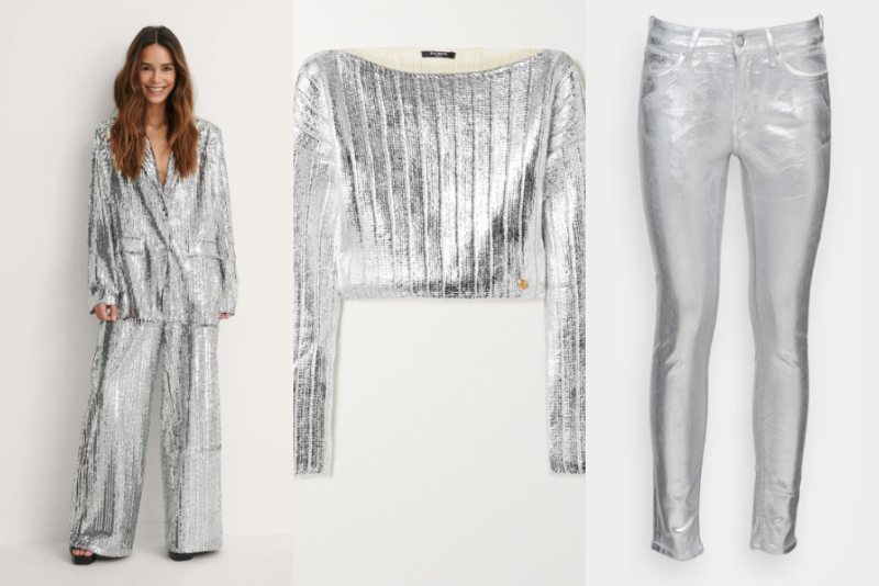 Si quieres copiar o inspirarte en el estilo del look de la presentadora sevillana te proponemos algunas posibilidades de prendas plateadas: