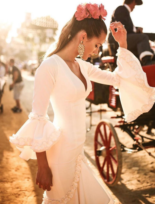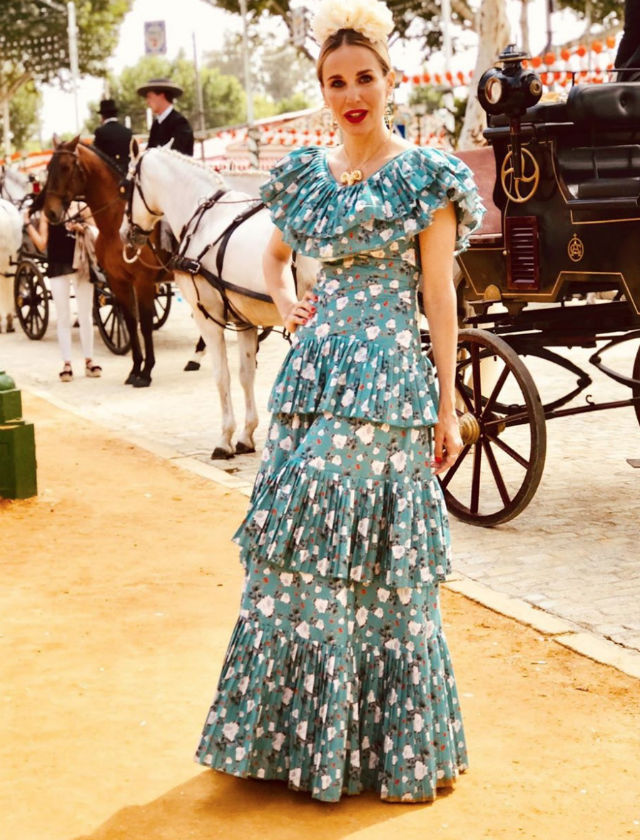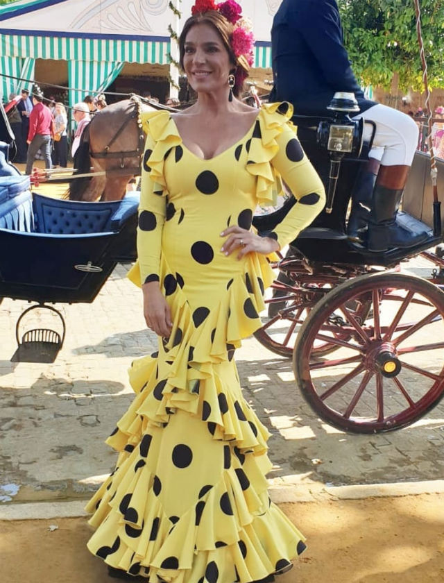 Lourdes Montes con diseño propio de la firma Miabril en la Feria de Abril 2019