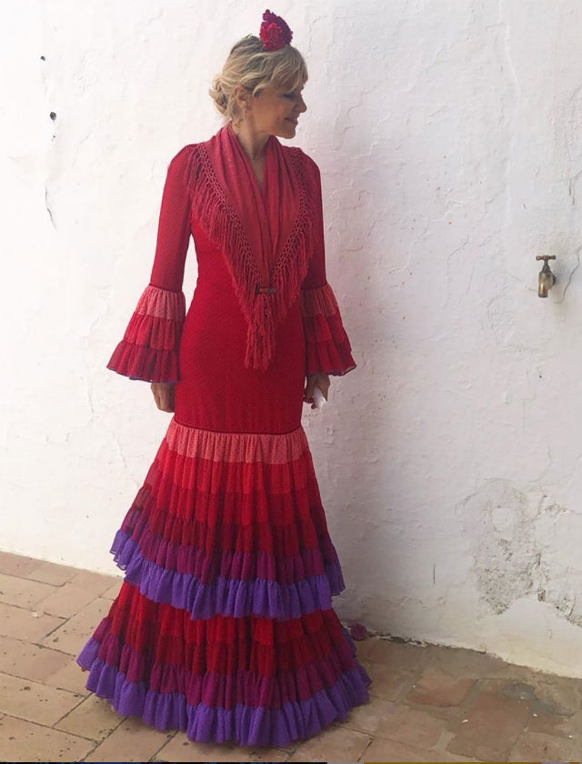 Virginia Troconis con traje de flamenca de José Hidalgo.