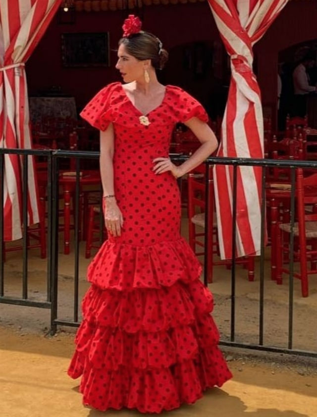 Sandra Ibarra con traje de flamenca de Aurora Gaviño