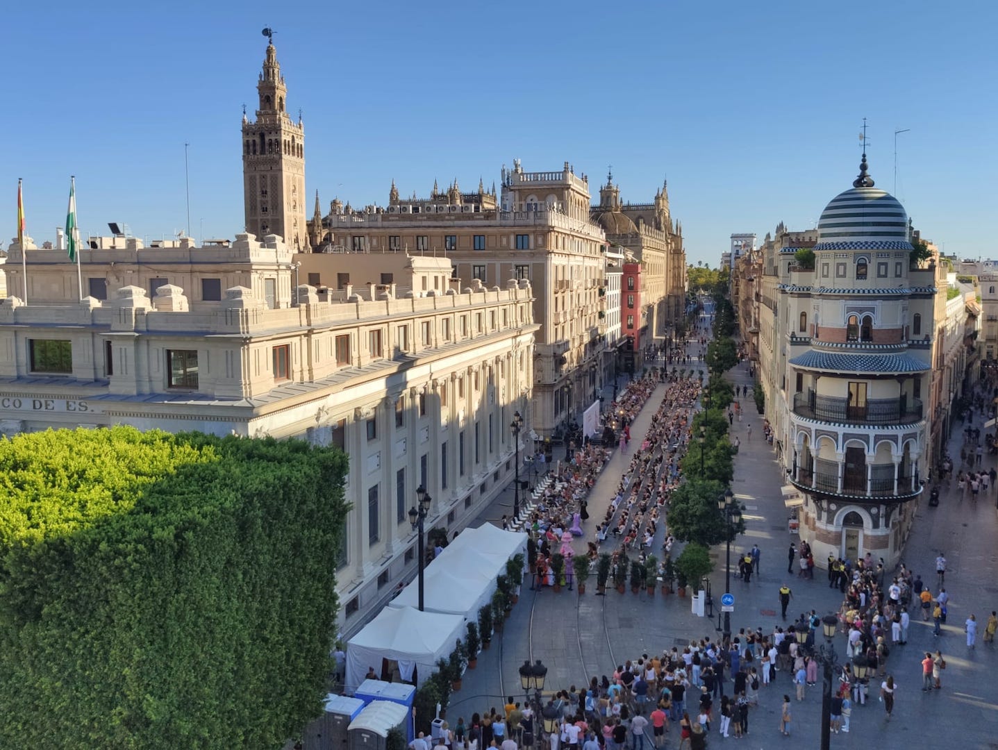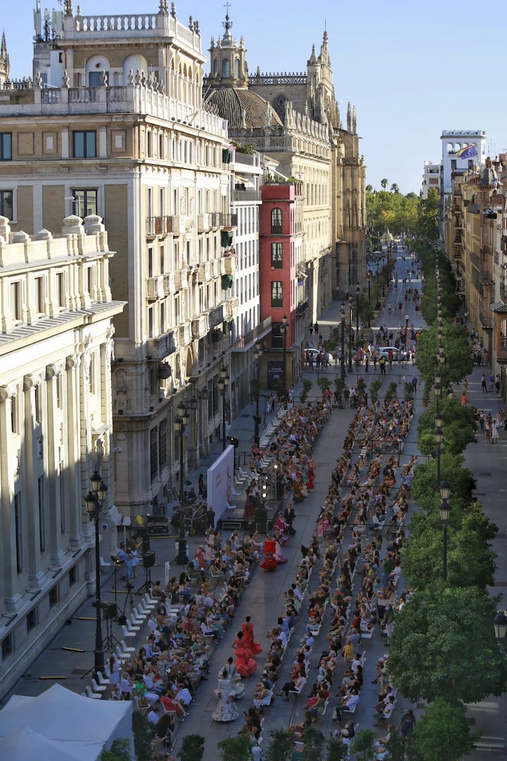 Tercer desfile colectivo de flamenca (18:00 h) en la Avenida de la Constitución de Sevilla.