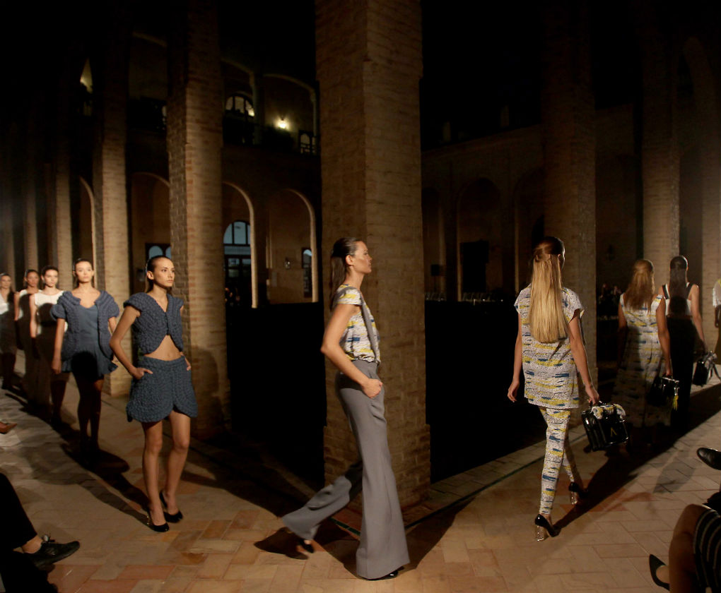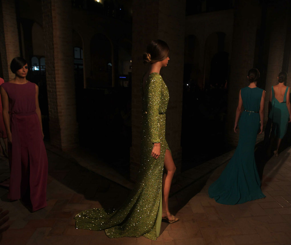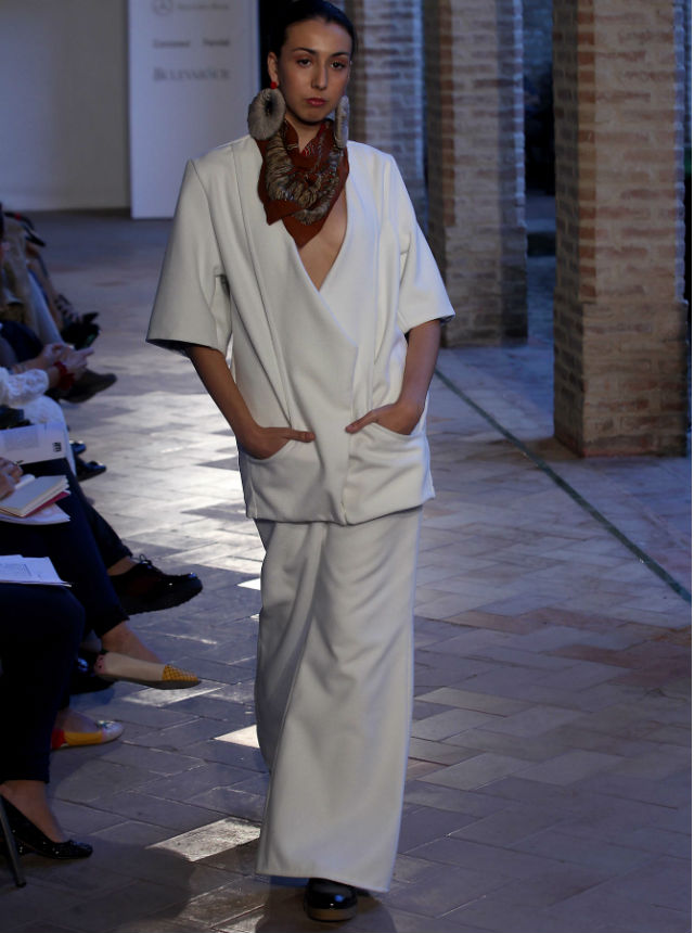 Por la tarde, más desfiles. Se había cogido el ritmo y ya no había quien parase. Los primeros, a las 16.30 horas eran el colectivo que Andalucía de Moda había calificado como Emprendedores. Cinco diseñadores con cinco proyectos de estilos totalmente diferentes desfilaban uno tras otro para un Palacio de los Marqueses de la Algaba que volvió a llenarse por completo.
