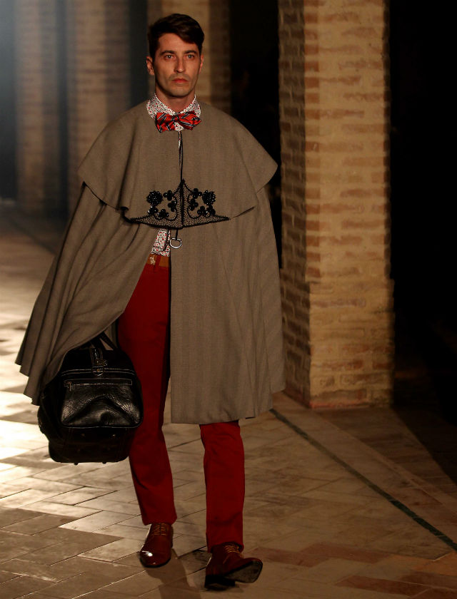 Para cerrar la jornada Daniel Carrasco sacó las capas masculinas del armario reivindicando el uso de esta prenda más allá de la televisiva de Ramón García cada Nochevieja en La 1. «The British Affair» recoge desde aires militares a capas de inspiración en el estilo británico, otras bordadas de azabache por Francisco Carreras Iglesias y otras de aplicaciones marroquíes en hilo de plata.