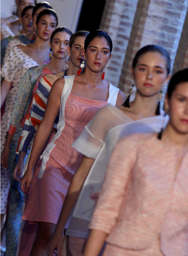 Mila Fuentes, que está desarrollando su andadura profesional en la moda con paso firme (ya es habitual en las pasarelas sevillanas, donde también ha abierto tienda propia), presentó «Vuela», una colección de verano muy «lady» y llena de color. Destacaban los divertidos estampados de animales, pelícanos y flamencos, y su forma de interpretar lo último: pantalón de pijama, tiros altos, monos, etc.