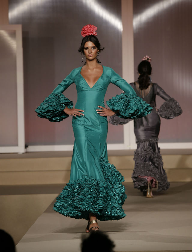 Desfile de Candela Garrido durante Miss World Sevilla 2016 con moda flamenca.