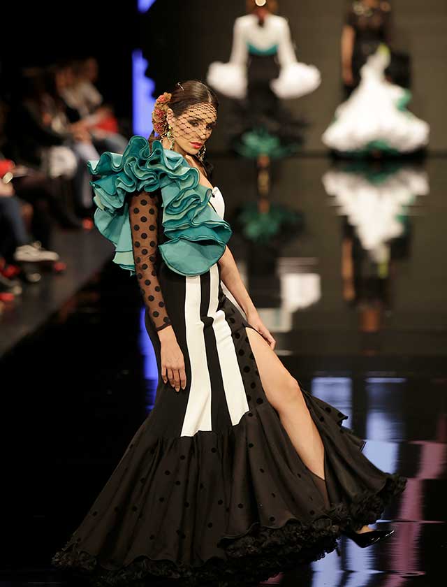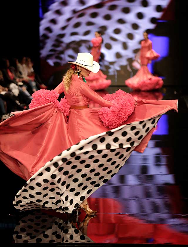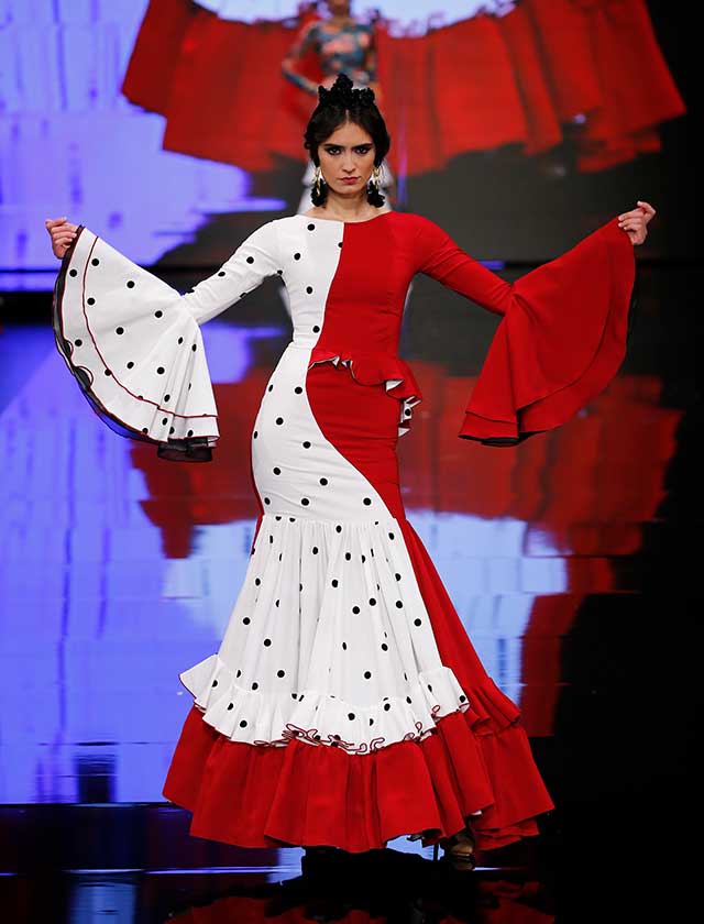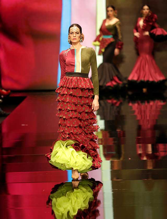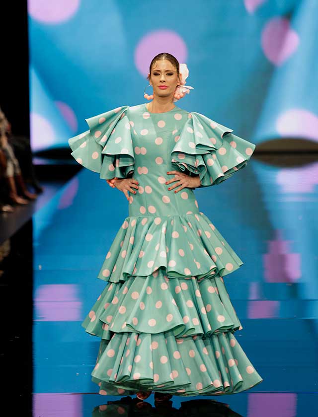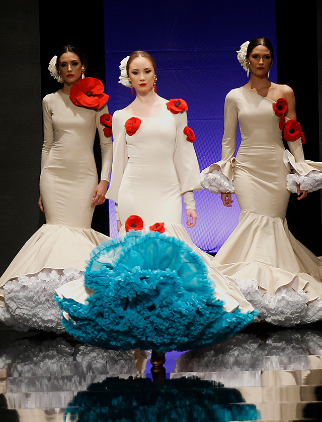 Tejidos como la polipiel. Descubre «Sakura», la nueva colección de moda flamenca que Patricia Bazarot ha presentado en SIMOF 2018.