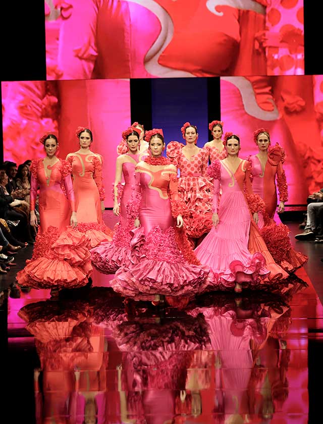 Julianna Ro en el centro, durante el desfile de Qlamenco en SIMOF 2018.