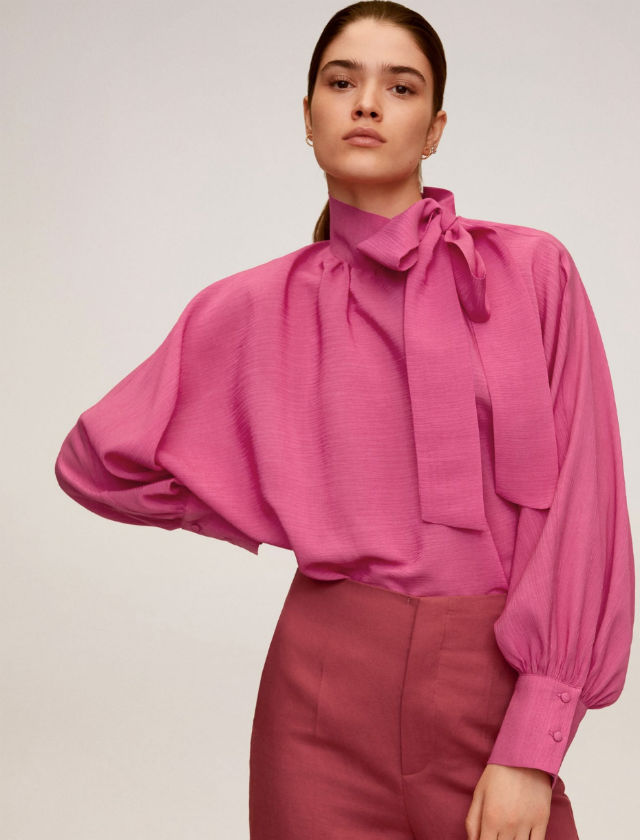 Camisa con lazada y mangas abullonadas de Mango