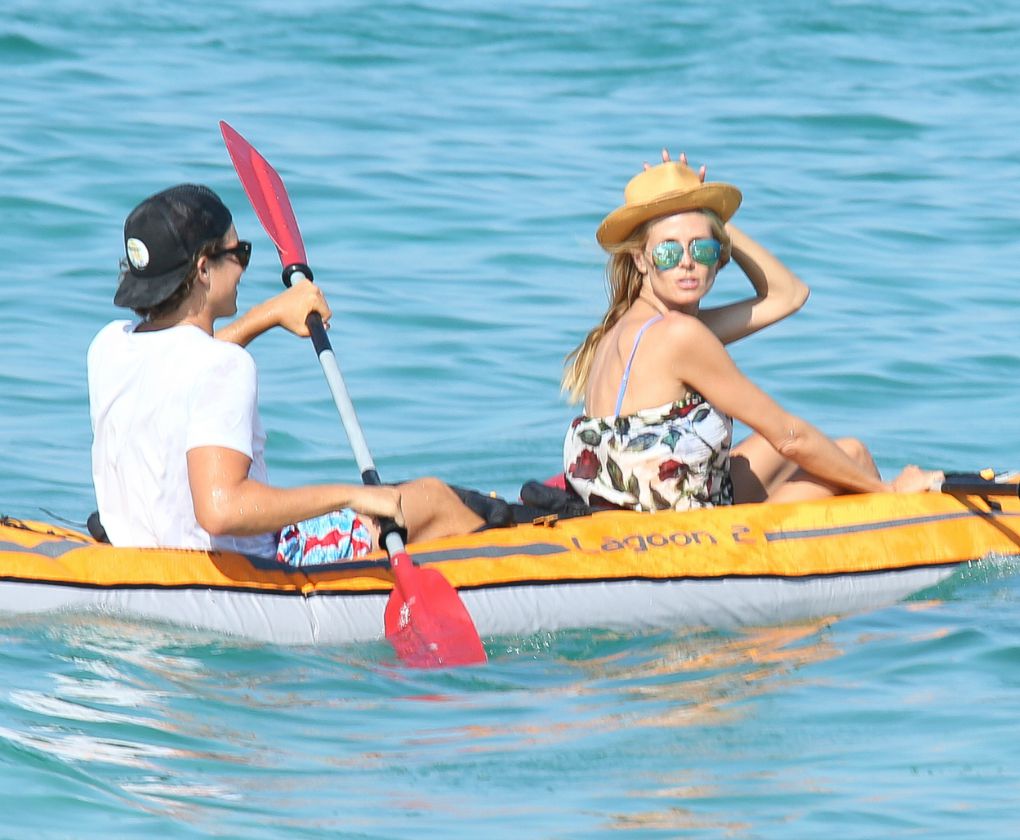 La también top internacional Heidi Klum vive una jornada de kayak y no se olvida de ir a la moda, gafas, minivestido y. por supuesto, sombrero borsalino. G3online