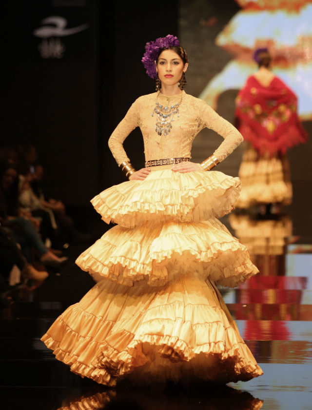 La colección «Habemus flamenca» de Luis Fernández ganó el certamen de diseñadores noveles de moda flamenca del IAJ en Simof 2016. Vanessa Gómez