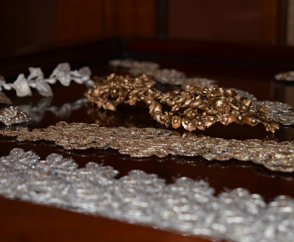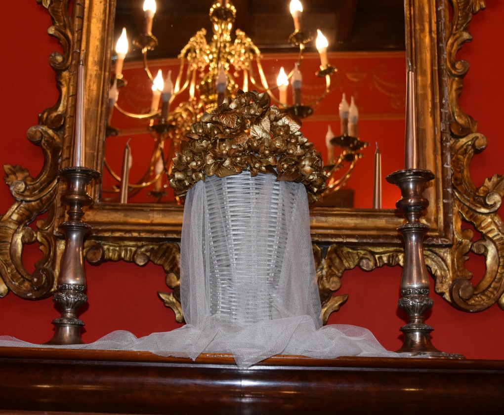 La firma de tiaras, aplicaciones y ramos Lupe de la Villa presenta en Sevilla sus trabajos.