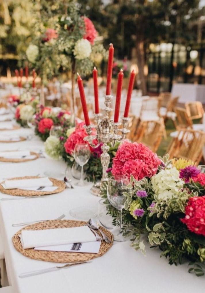M.H: El tipo de decoración depende mucho del sitio donde sea el evento, para mí es mucho más importante poner un gran bodegón de flores por ejemplo, que muchos detallitos que pasan casi desapercibidos, es mejor concentrar el presupuesto en algo lucido que llame la atención que en muchos puntos pequeños. Si el evento es de noche, para mí es fundamental una buena iluminación cálida y muchas muchas velas.