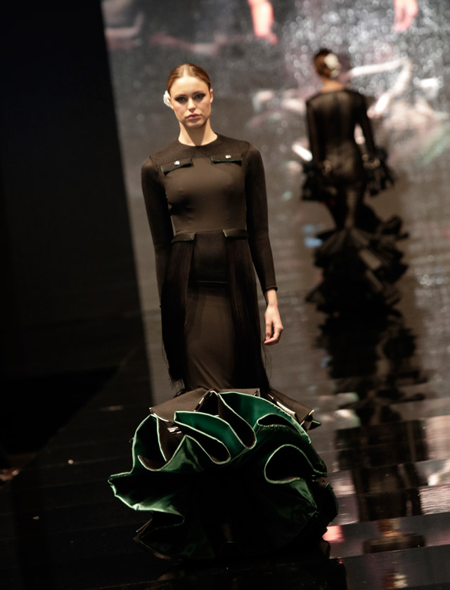 Ernesto Sillero ha presentado «Tanuca», una colección homenaje a Dña. Cayetana de Alba, una mujer apasionada del traje flamenca y el estilo andaluz. (