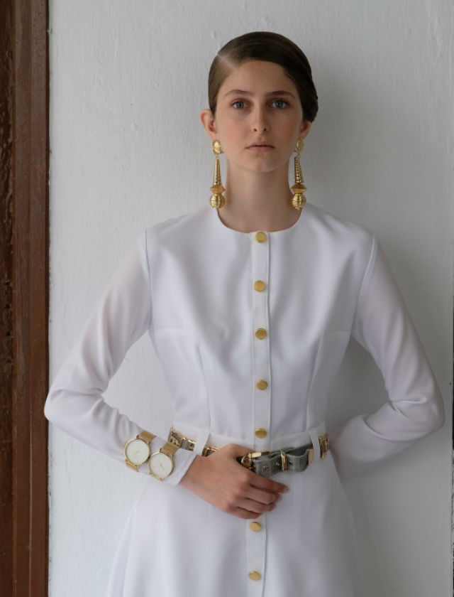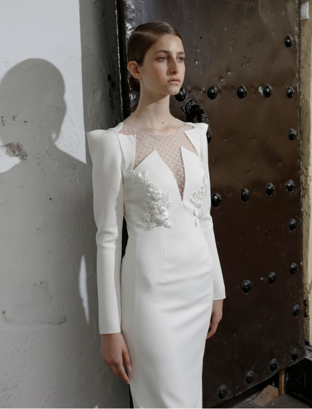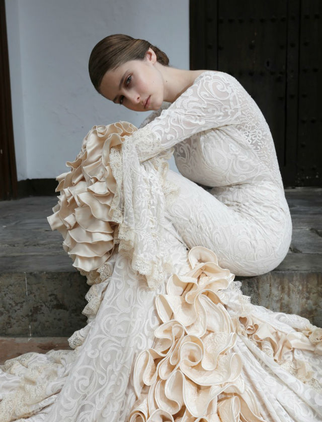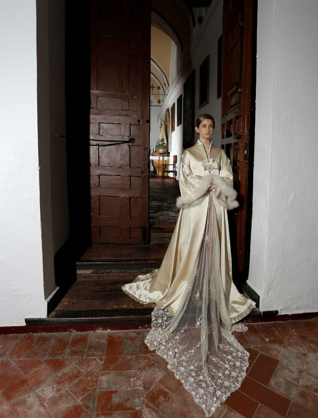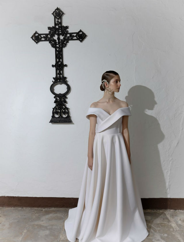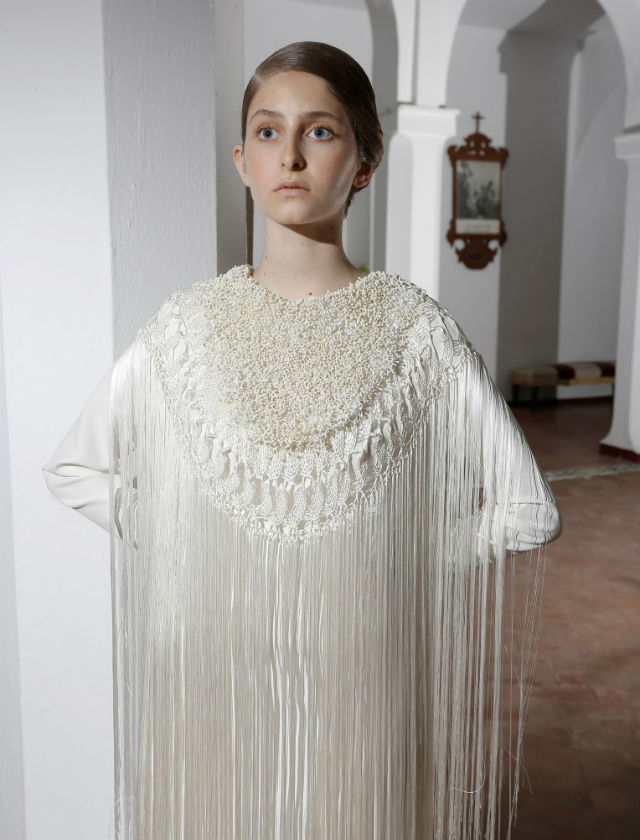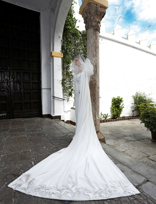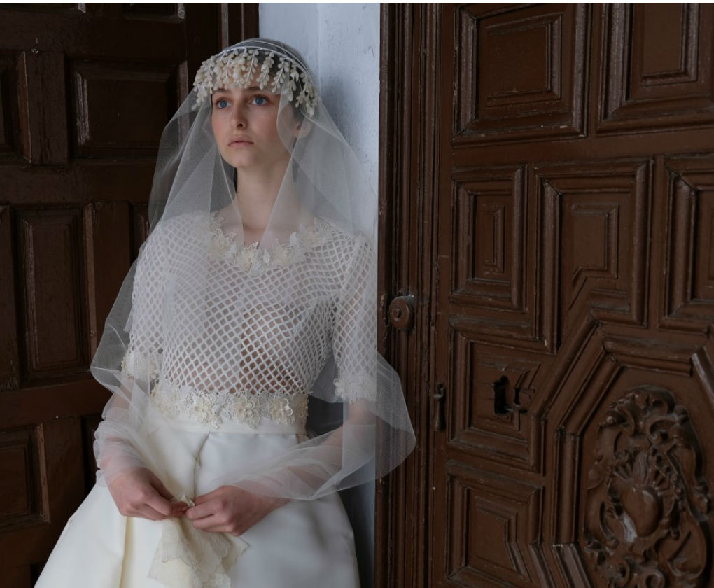 Vestido de novia de Luis Fernández y tocado de Benjamín Bulnes.