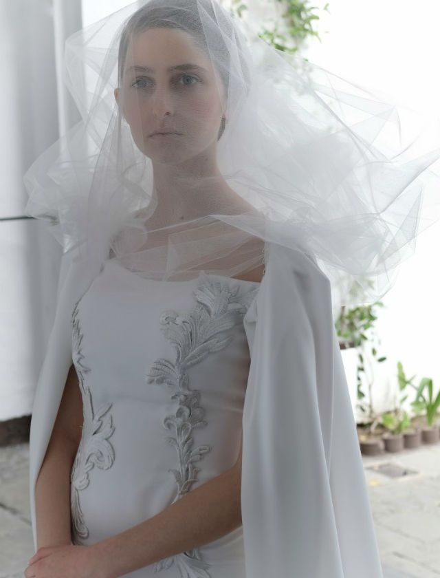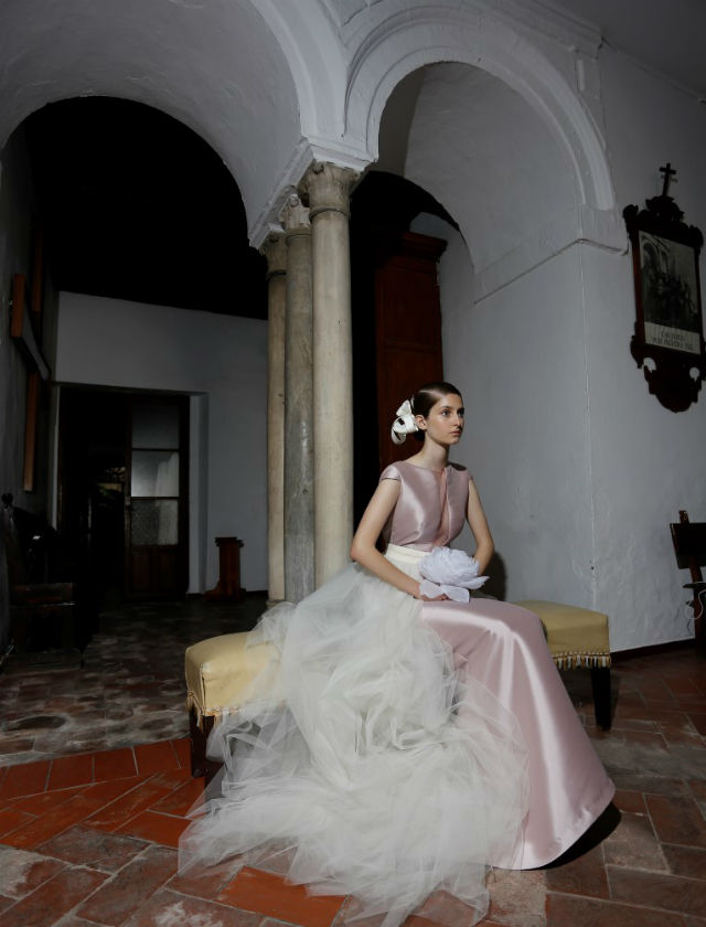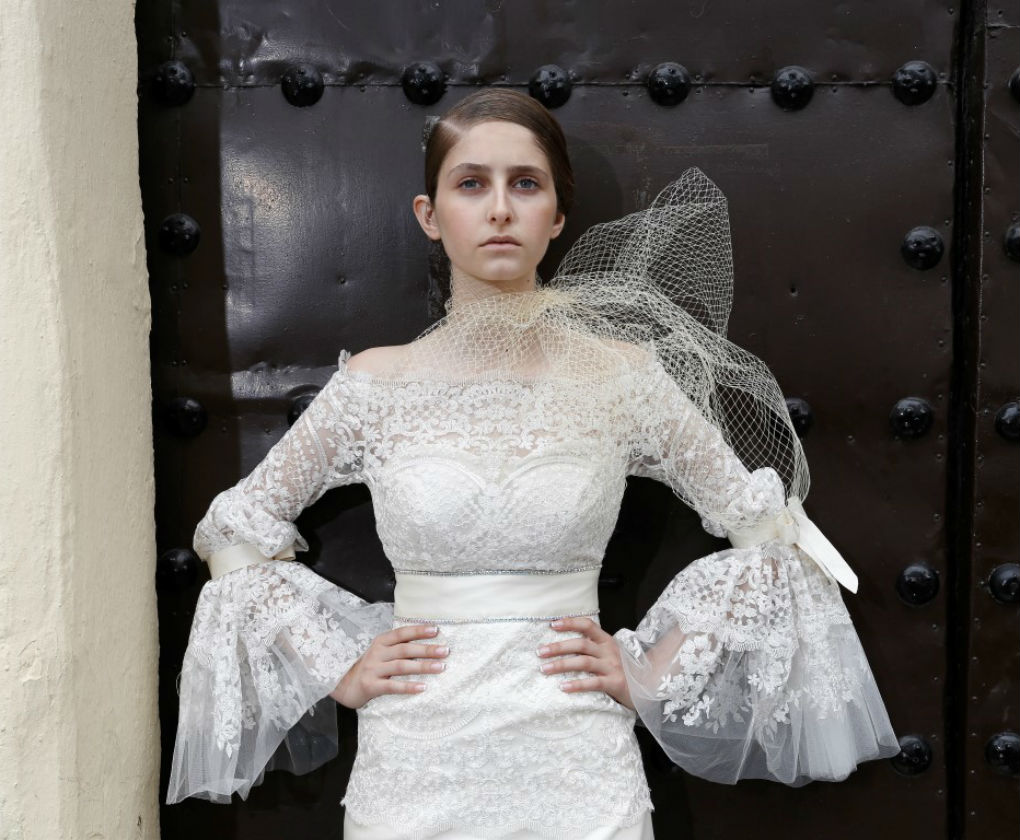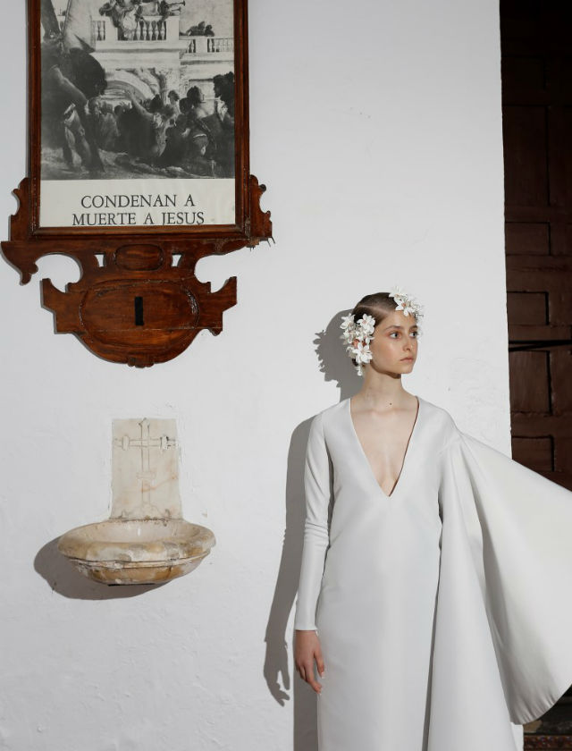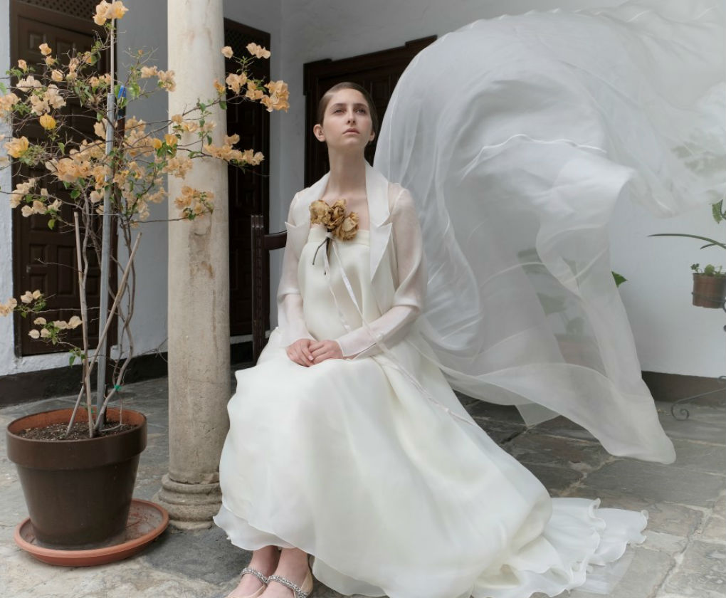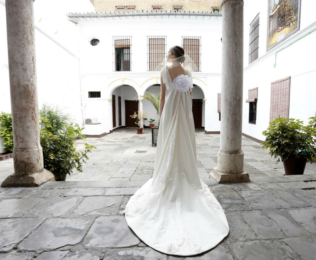 Vestido de novia de Loli Vera y tocado de Benjamín Bulnes.