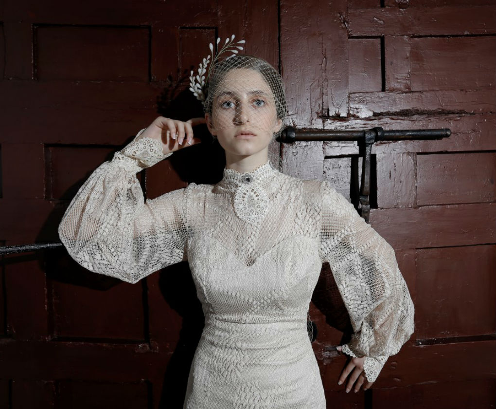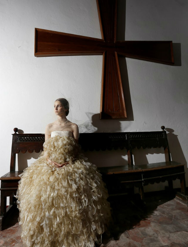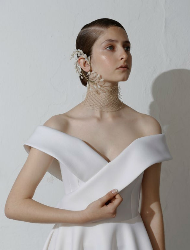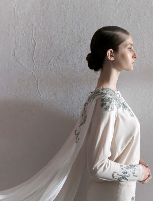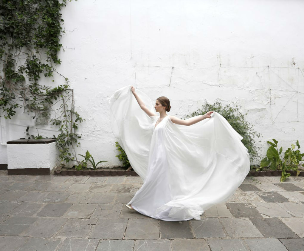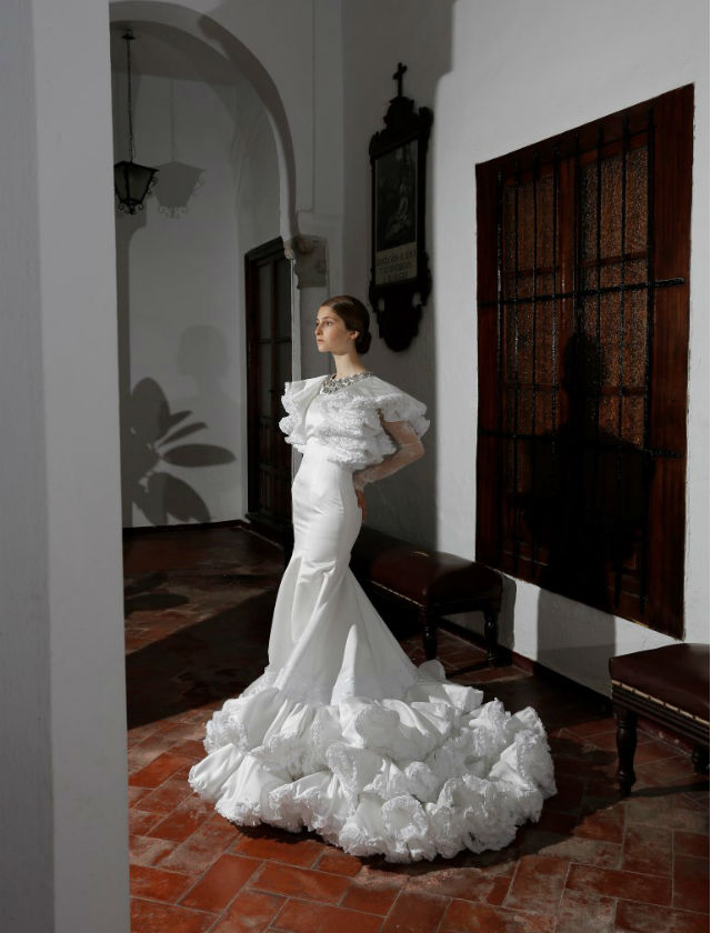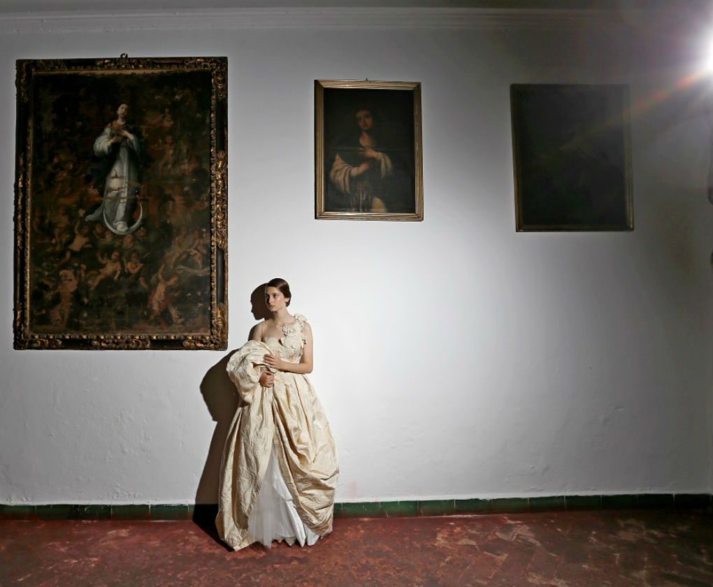 Vestido de novia de Loli Vera y tocado de Benjamín Bulnes.