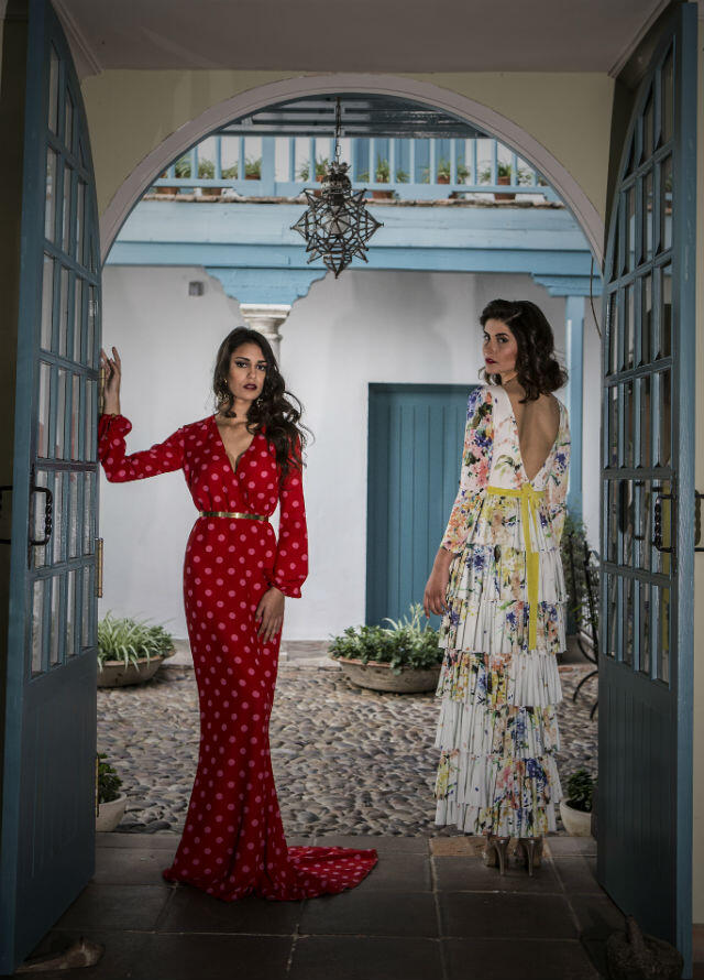 De la nueva colección de primavera-verano 2016 de Cherubina nos quedamos con un vestido asimétrico de largo midi con estampado en rojo y negro. Para las noches más elegantes optamos por vestidos largos, uno de lunares de la colección presentada por Iván Campaña en la pasada edición de Andalucía de Moda y otro de un suave estampado floral y con volantes que José Hidalgo llevó a su desfile de moda flamenca en We love Flamenco 2016 como ejemplo de traje que bien puede ser flamenca y para prêt à porter.