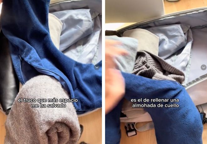 A la hora de montar en avión, los pantalones cargo no son los únicos que se han viralizado como truco. Existen otros muchos más “travel tips” que te ayudarán y te salvarán la vida en más de una ocasión. Como por ejemplo, ¿recuerdas las almohadas de viaje? Son almohadas con forma semiredonda con un hueco para el cuello, donde reposar la cabeza. Esas almohadas se pueden abrir para poder lavar la funda.