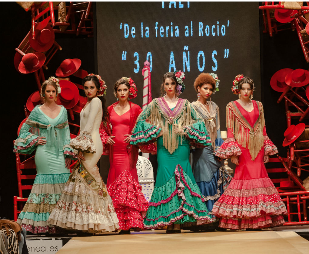 Desfile de Faly De la feria al Rocío en la Pasarela Flamenca de Jerez 2019.