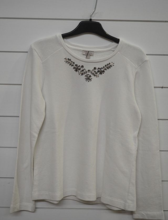 Jersey blanco con pedrería de Trucco por 22,99 euros