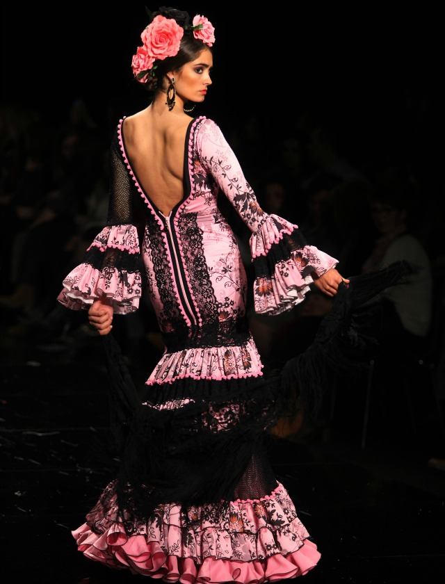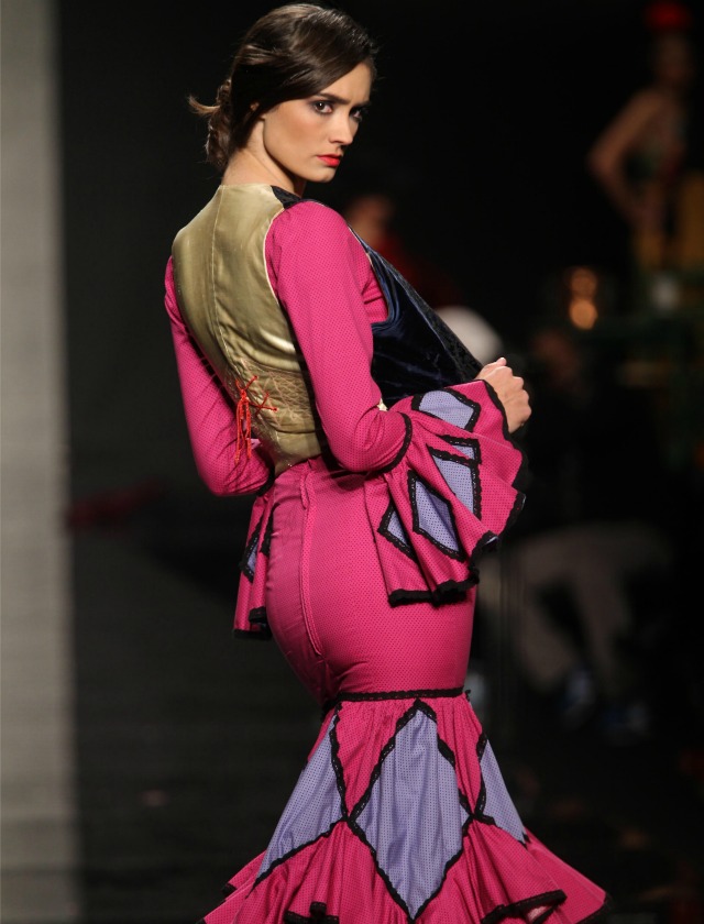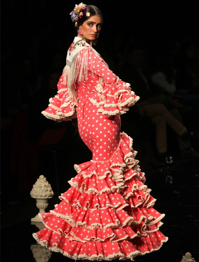 El traje de flamenca lo luce con gracia y se desenvuelve a la perfección sobre la pasarela. Raúl Doblado