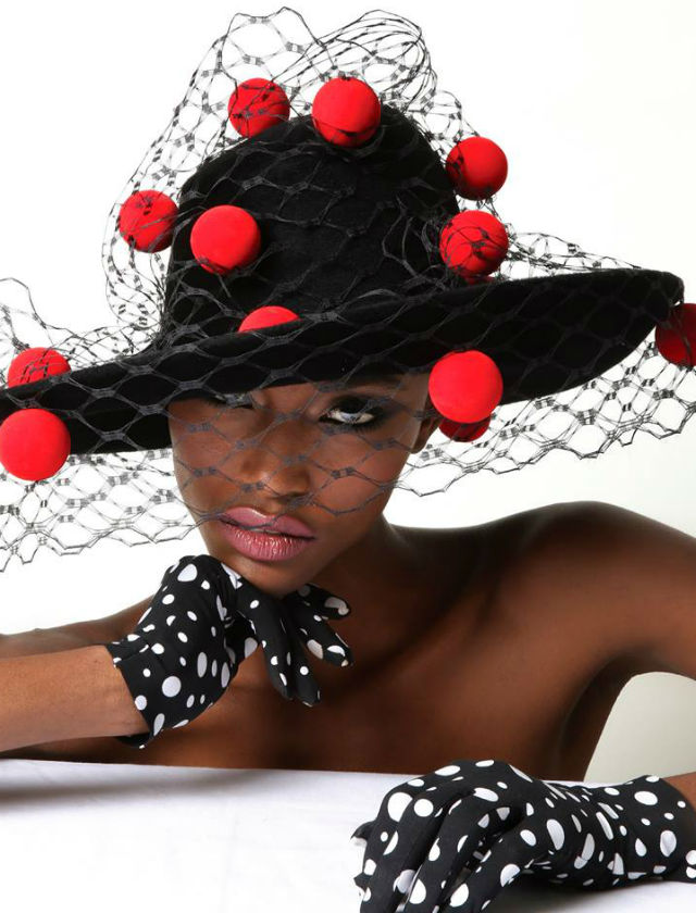 Modelo con creaciones de Philip Treacy, firma internacional que tiene el taller de la sevillana Reyes Hellín