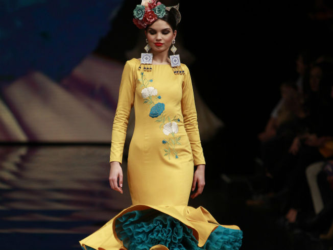 Más de 1400 trajes de flamenca después podemos empezar a hablar de las tendencias que la edición de Simof 2017 pone sobre la mesa. En cuanto a estampados, reinan los clásicos: flores y lunares. Y destacamos algunos especiales como la pata de gallo de Andrew Pocrid, las pinturas de Pilar Vera y Atelier Rima. La paleta cromática es amplia y va de los colores atemporales como el negro, blanco y rojo a otros más especiales como el amarillo, rosa, verde agua y azul eléctrico. En cuanto a complementos, una apuesta diferenciada por los cinturones (los de cabezas de caballo de Aldebarán o los traídos del prêt-á-porter de Ernesto Sillero). La flamenca del 2017 sigue poniendo el énfasis en los volúmenes de los volantes bajos de capa, pero también en sus mangas y sigue subiendo el talle y relajando las faldas.