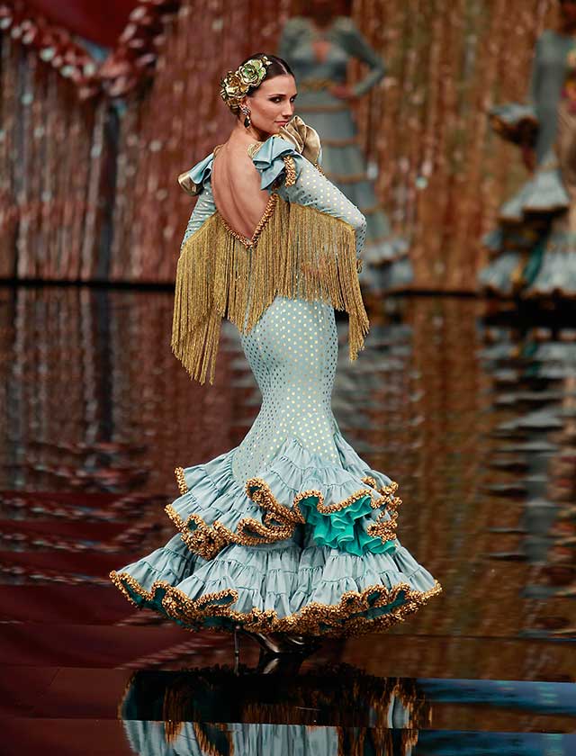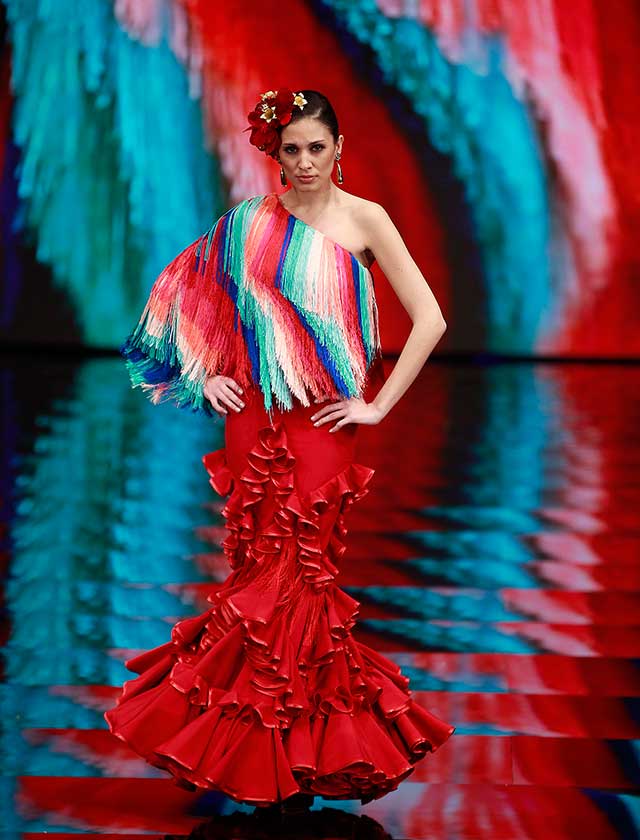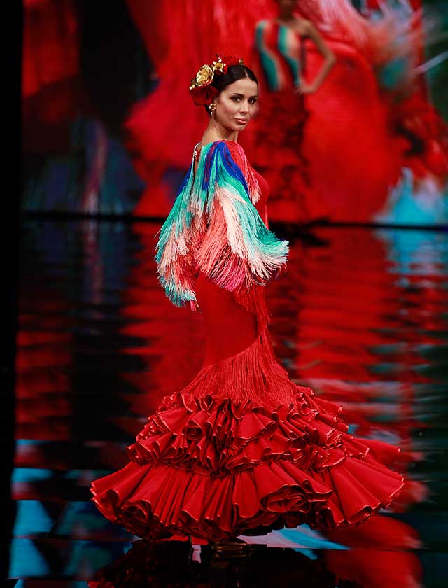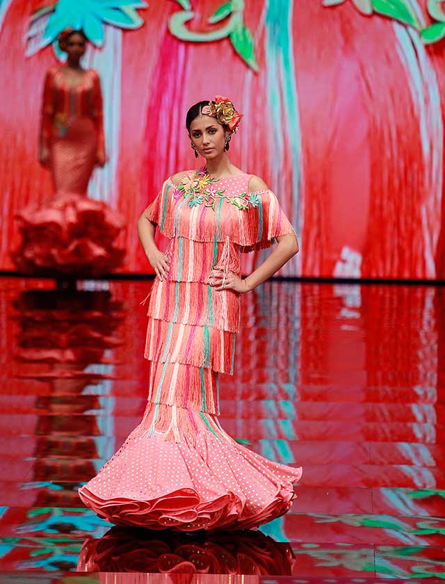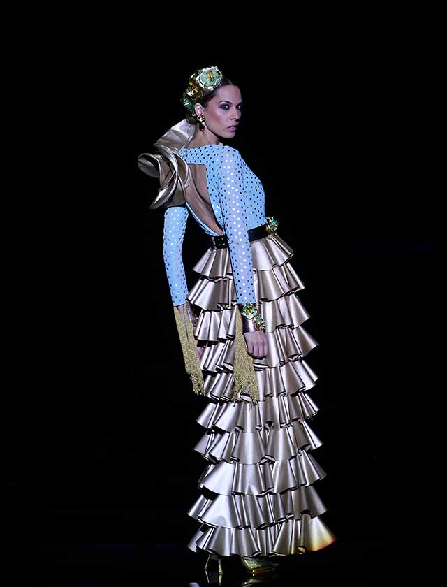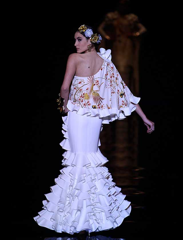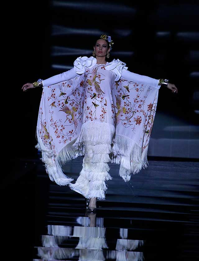 La diseñadora ha presentado «Volaré», una colección de vestidos que modernizan las formas y texturas con estudiados volúmenes y transparencias que crea una silueta flamenca más contemporánea (J. M. Serrano / Raúl Doblado)