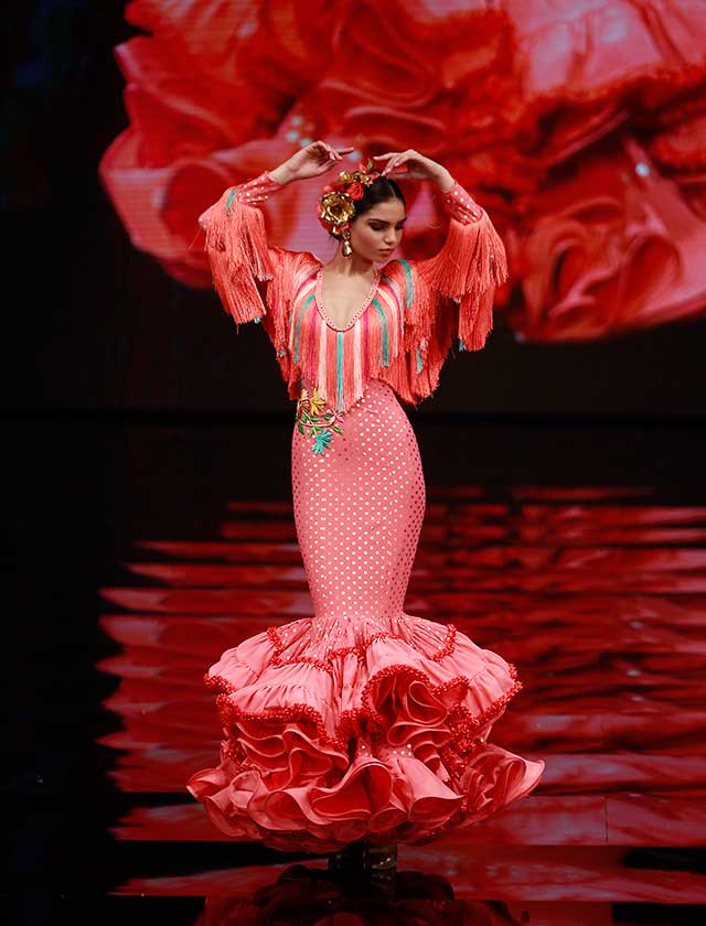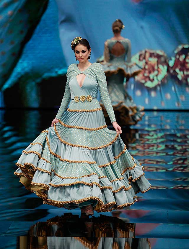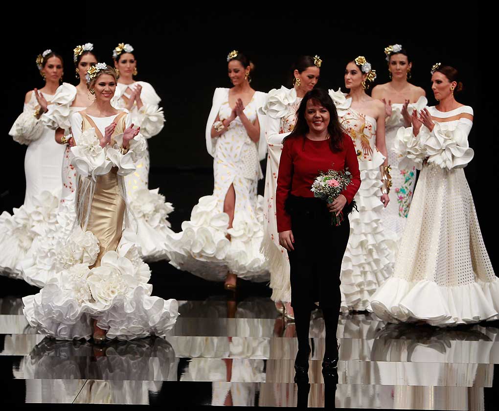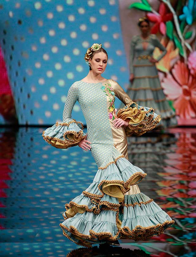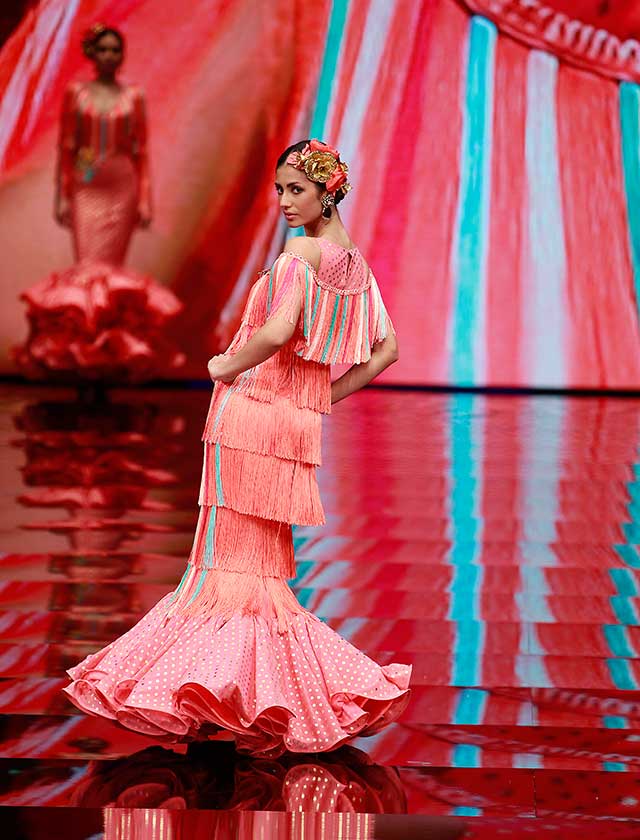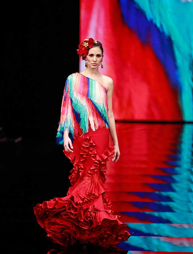 La diseñadora ha presentado «Volaré», una colección de vestidos que modernizan las formas y texturas con estudiados volúmenes y transparencias que crea una silueta flamenca más contemporánea (J. M. Serrano / Raúl Doblado)