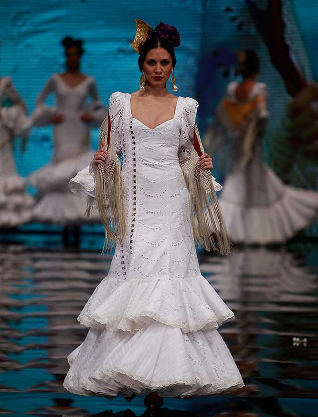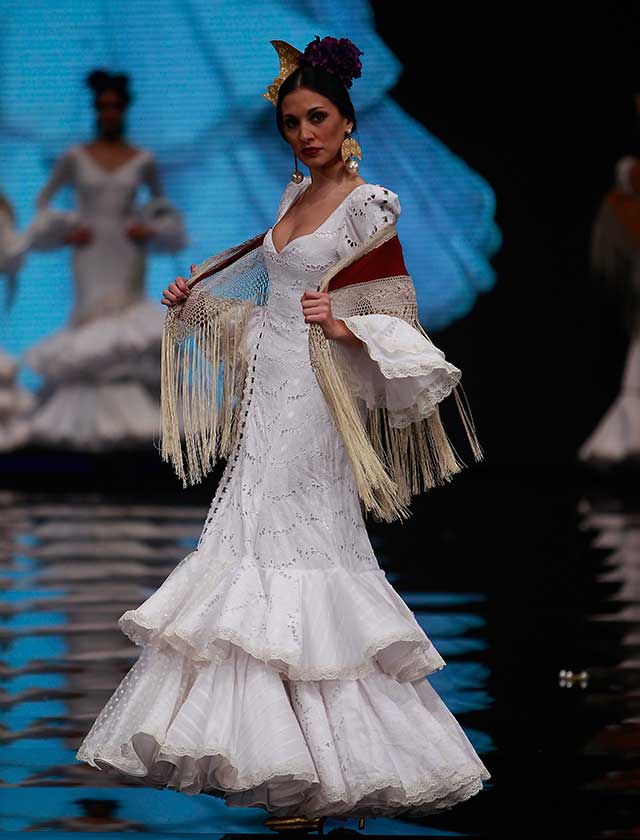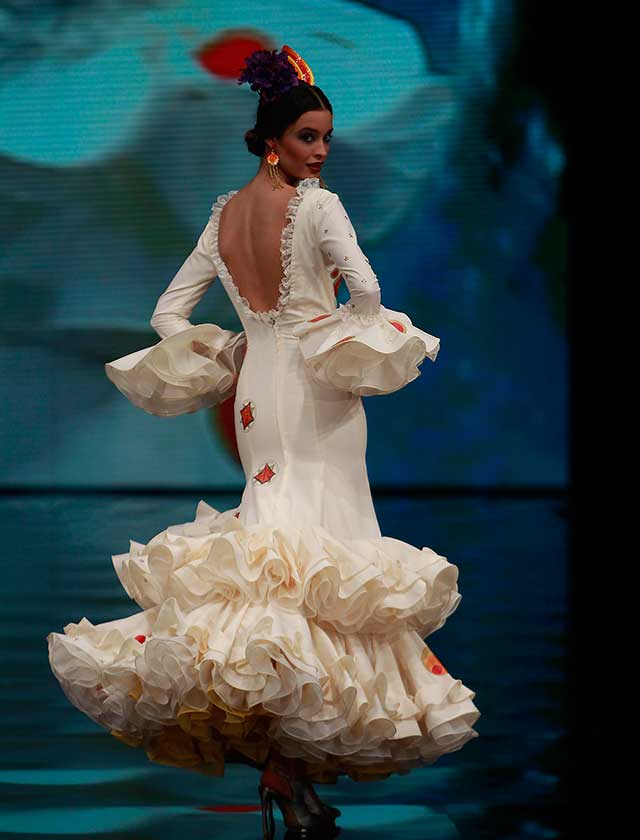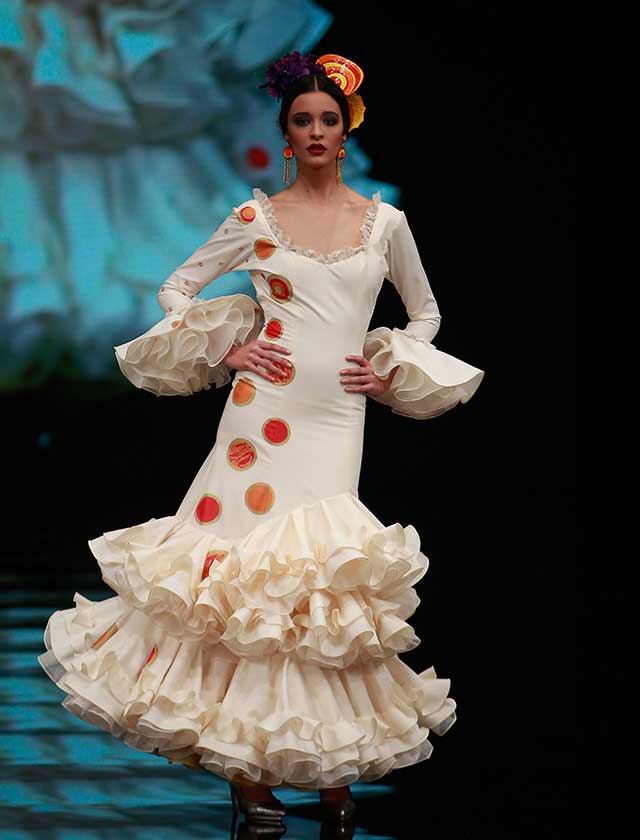 «Polichinela» es una colección de Carmen Latorre inspirada en el cuplé y sus protagonistas de primeros del siglo XX. Artistas como Raquel Meyer, la Bella Dorita, Argentinita, Lilian Celis y posteriores como Sara Montiel y la inolvidable Olga Ramos. (Rocío Ruz / Raúl Doblado)