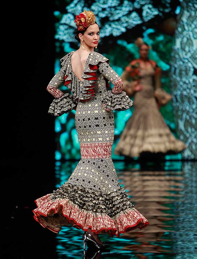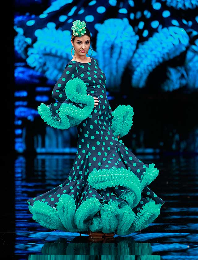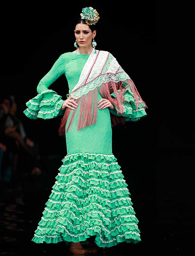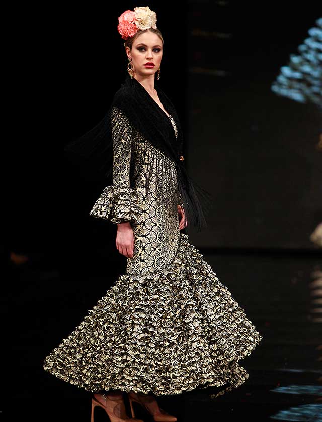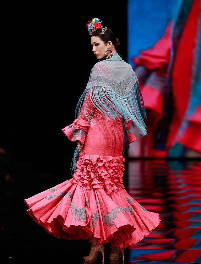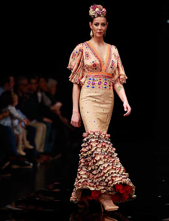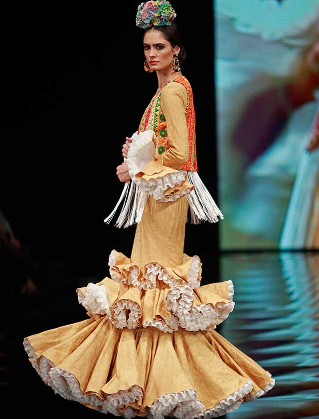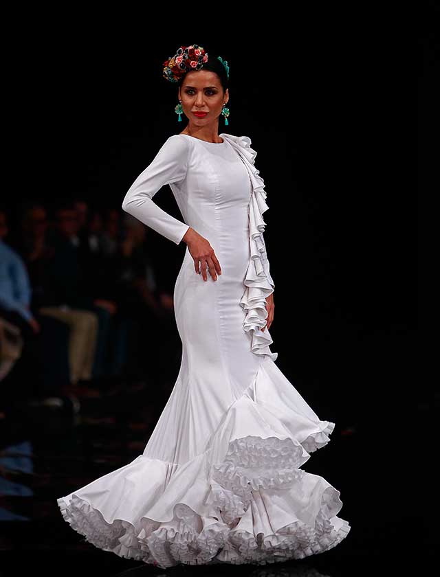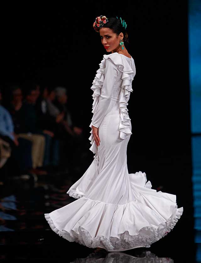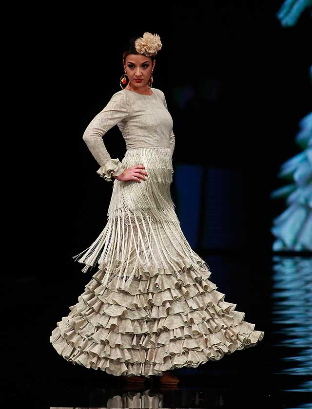 «Pensamientos» es una colección formada por telas procedentes de la India. Destacan sus volantes grandes plisados de tul y muchos plisados manualmente (Rocío Ruz / Raúl Doblado)