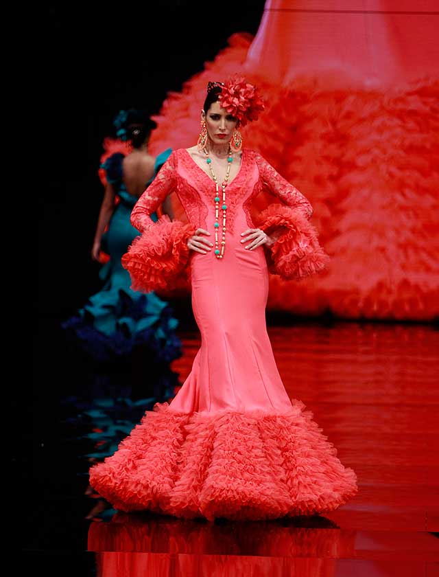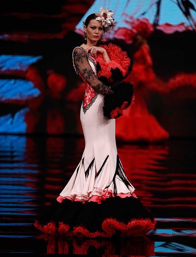 El concepto de la colección «Flamingo» está basado en las aves y el paisaje de las Marismas de Doñana, desde el reflejo del camino del Rocío con su vegetación, hasta los flamencos alzando el vuelo (Rocío Ruz / Raúl Doblado)