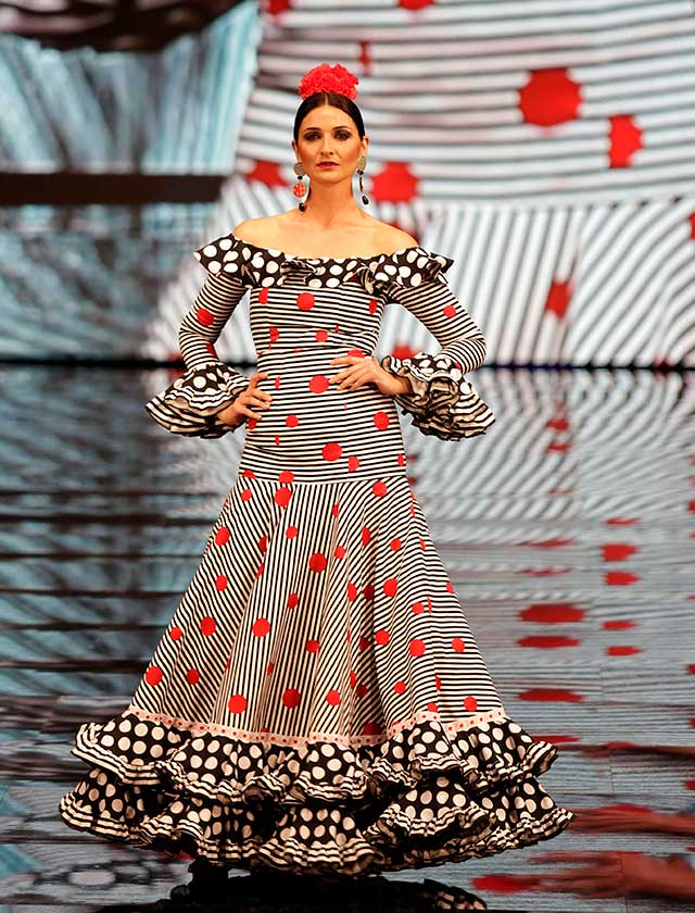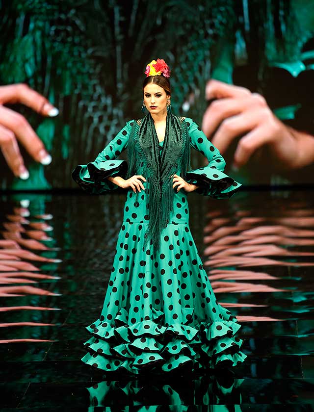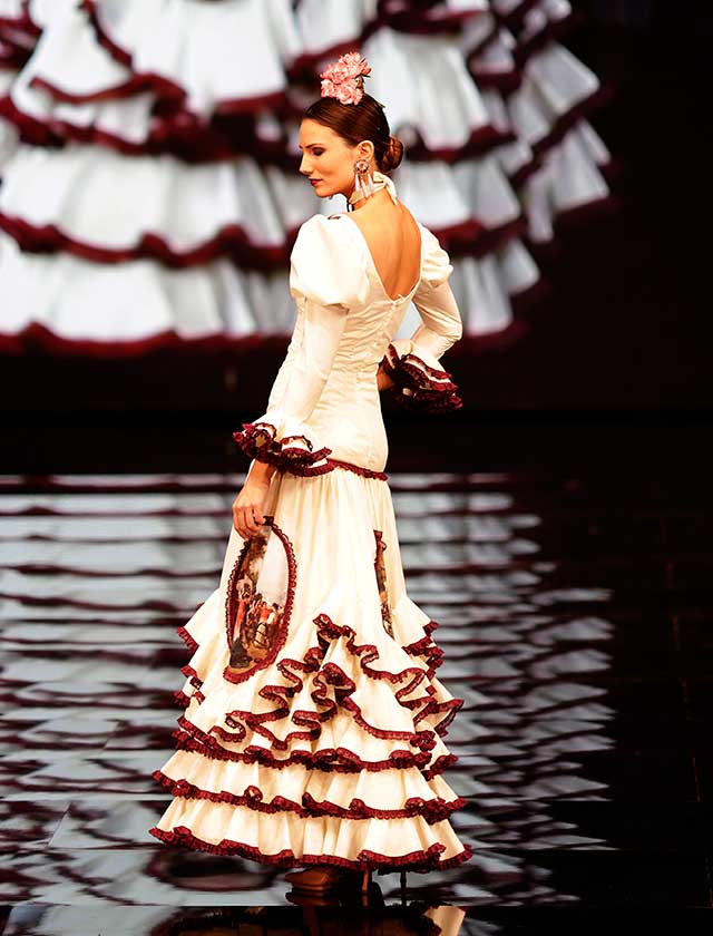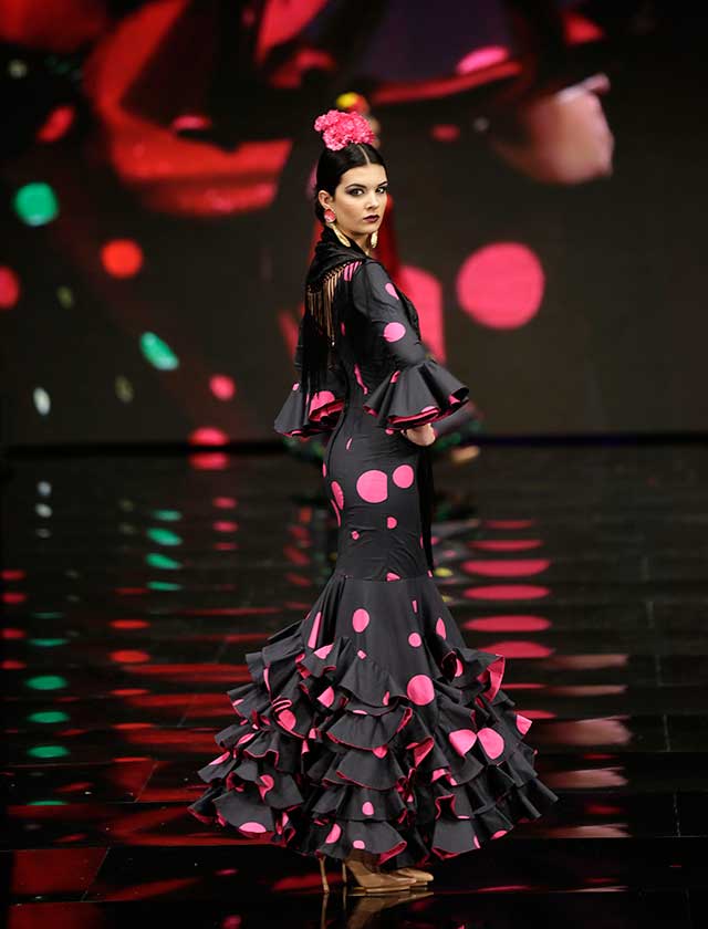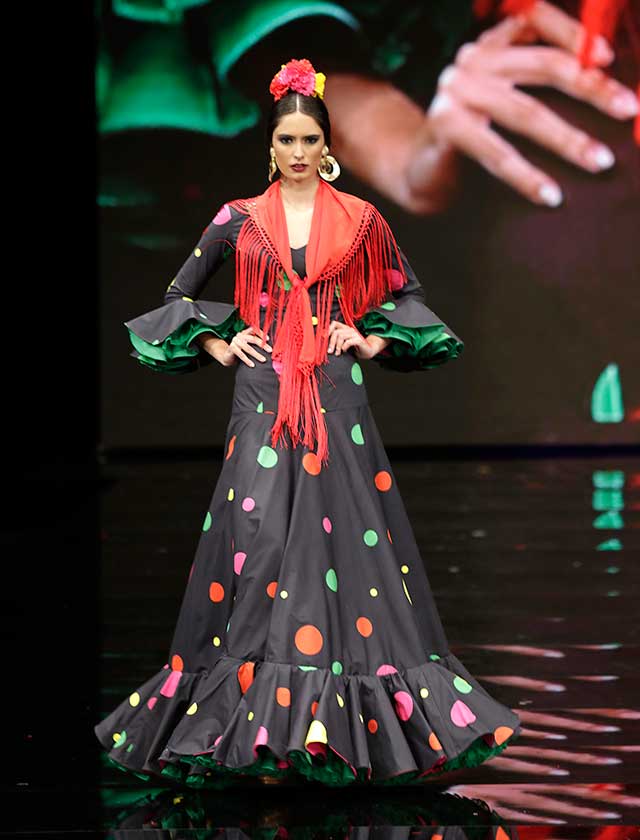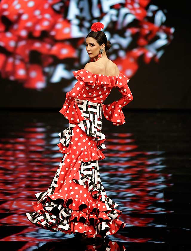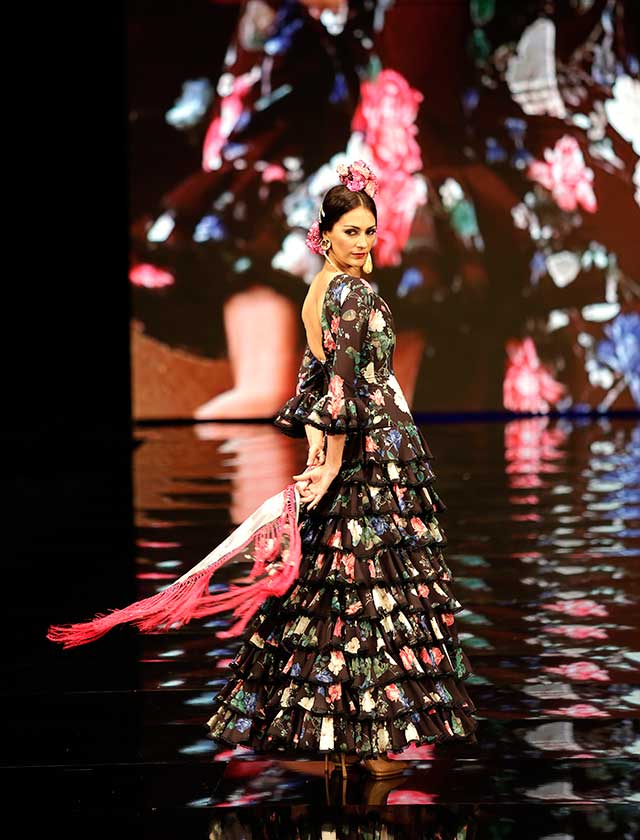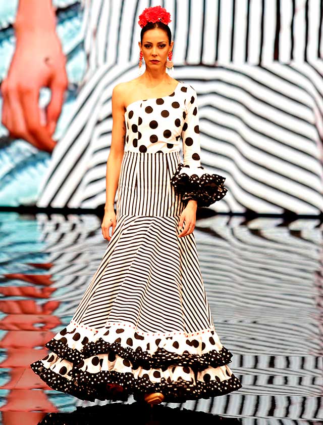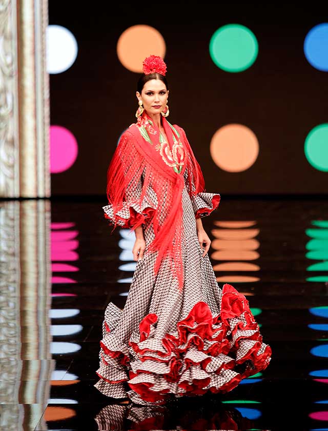 La diseñadora dedica esta colección con la que celebra 40 años de exitosa carrera «A la pintura», con dos bloques diferenciados: pintores costumbristas sevillanos del siglo XIX y color y geometría pop. (J. M. Serrano / Vanessa Gómez)