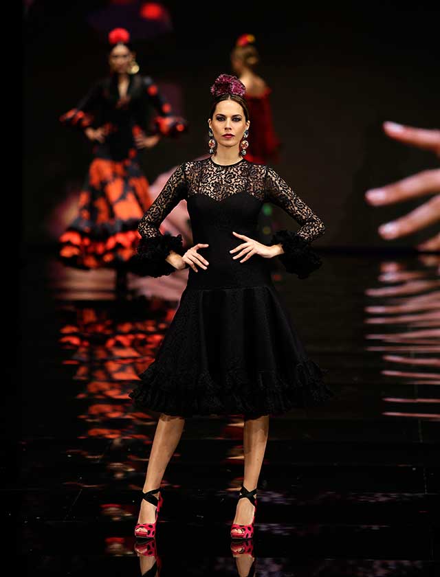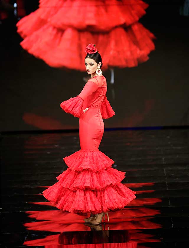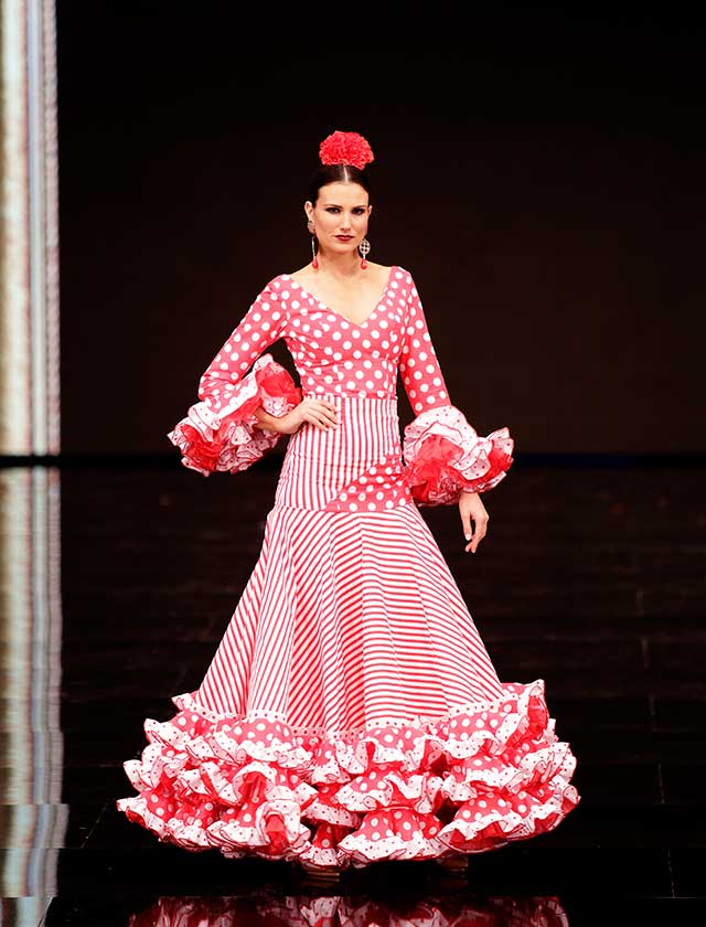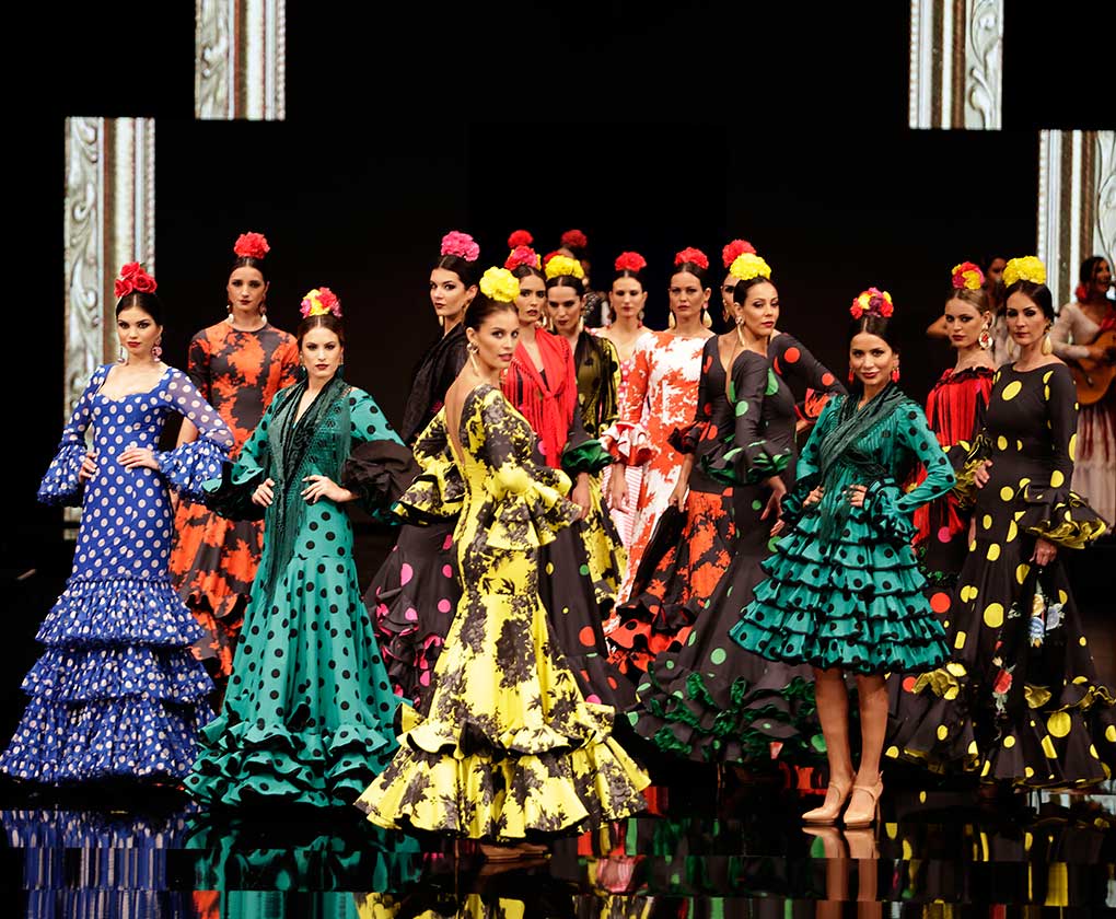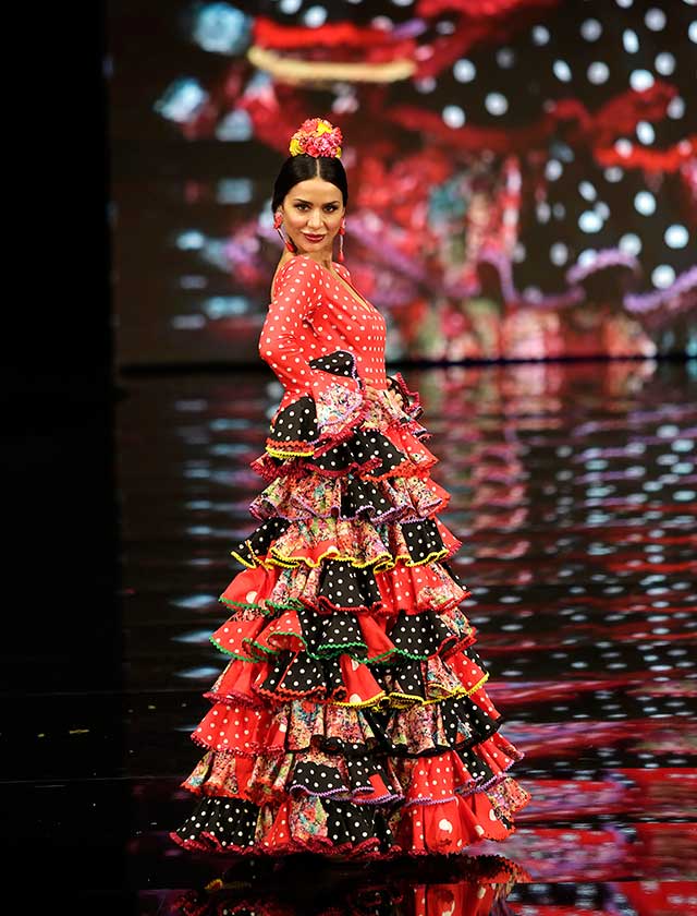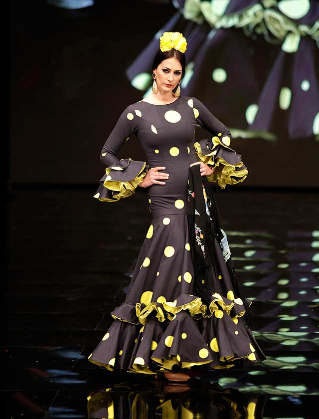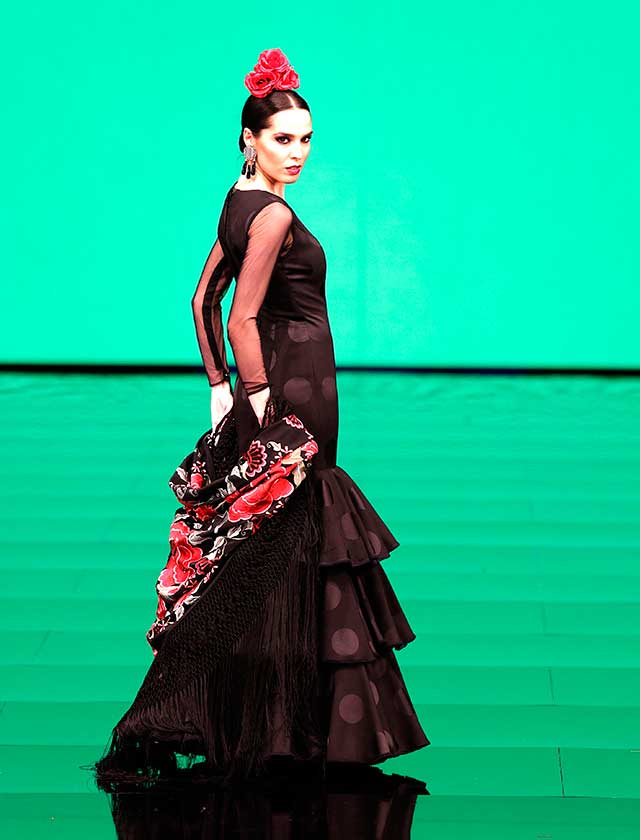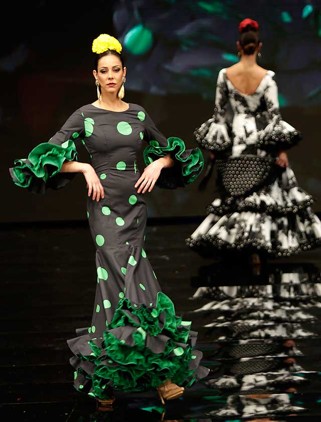La diseñadora dedica esta colección con la que celebra 40 años de exitosa carrera «A la pintura», con dos bloques diferenciados: pintores costumbristas sevillanos del siglo XIX y color y geometría pop. (J. M. Serrano / Vanessa Gómez)