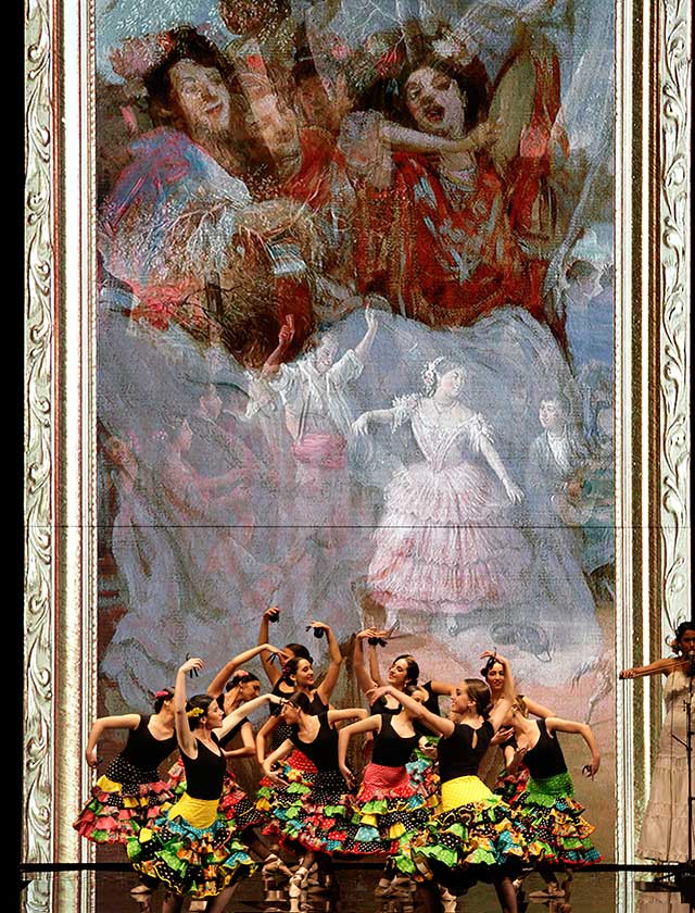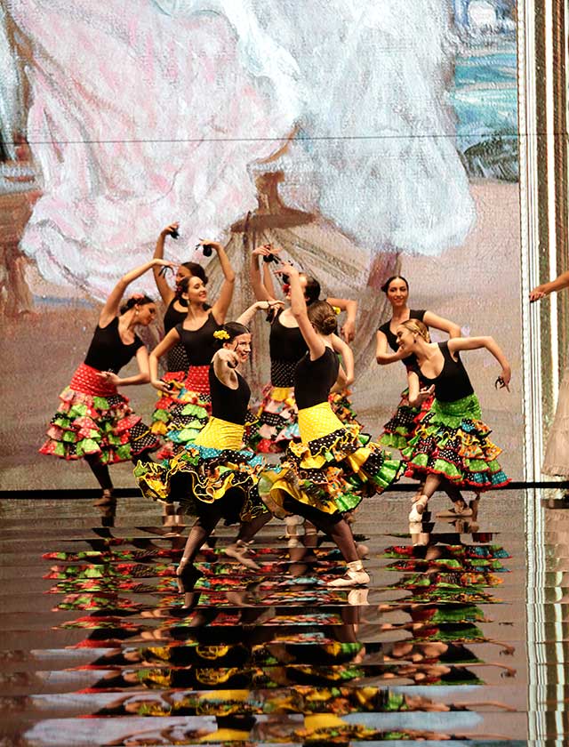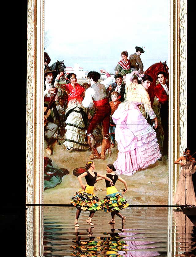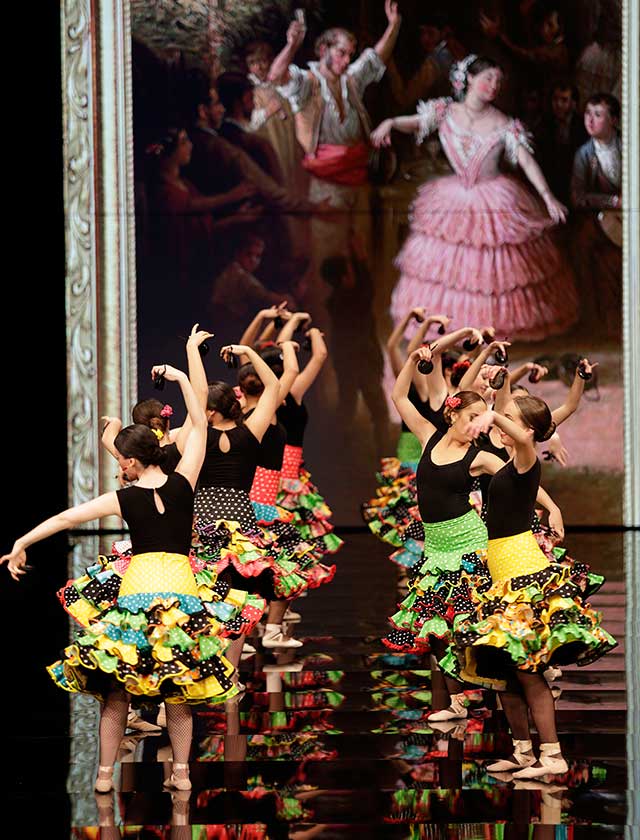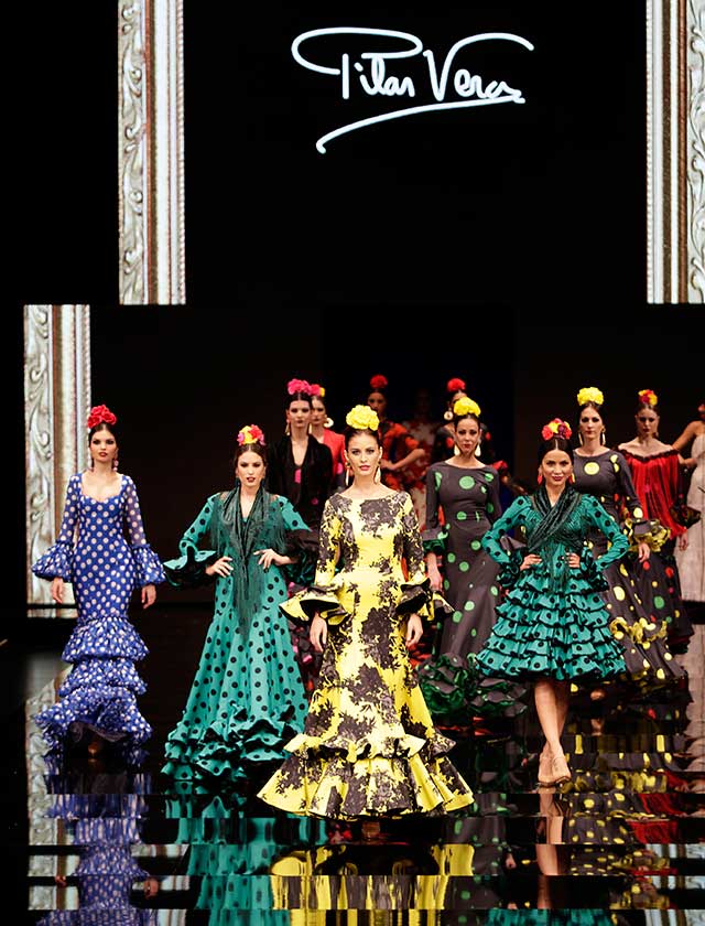 La diseñadora Pilar Vera dedica esta colección con la que celebra 40 años de exitosa carrera «A la pintura», con dos bloques diferenciados: pintores costumbristas sevillanos del siglo XIX y color y geometría pop. (J. M. Serrano / Vanessa Gómez)