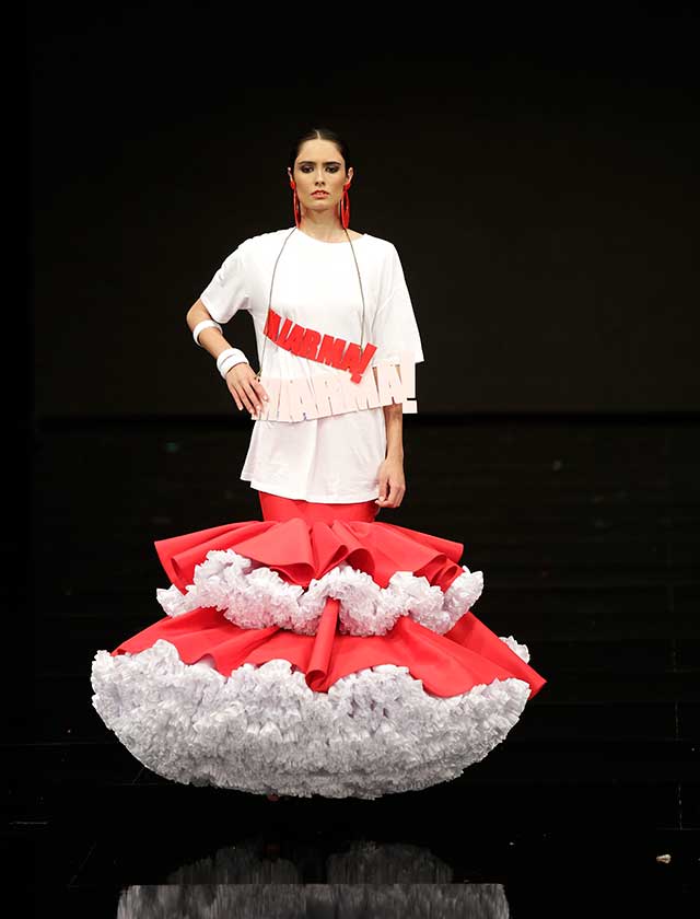La colección «¡Mira Mujé!» de Pedro Béjar se inspira en el folclore de la España de los años 60 desde una perspectiva kitsch, tomando como icono a Marujita Díaz (J. M. Serrano / Vanessa Gómez)