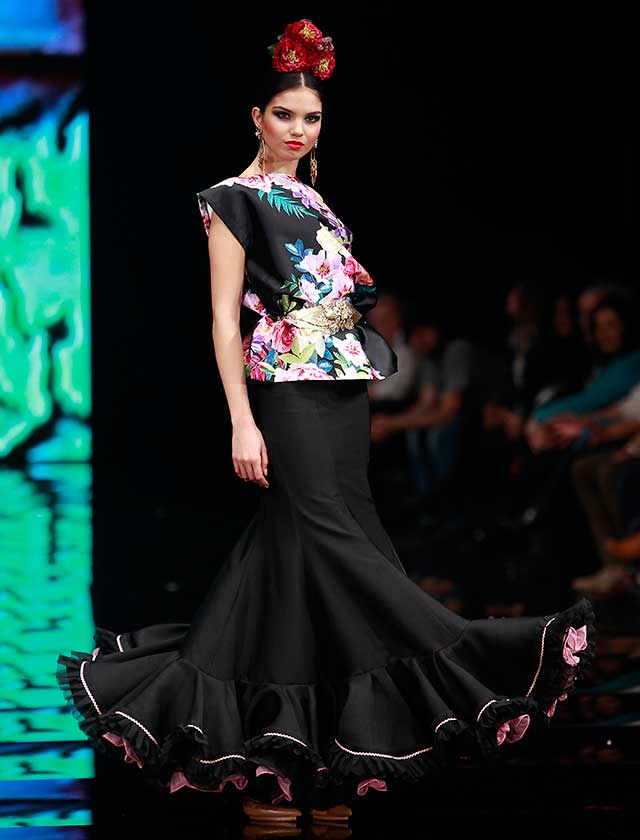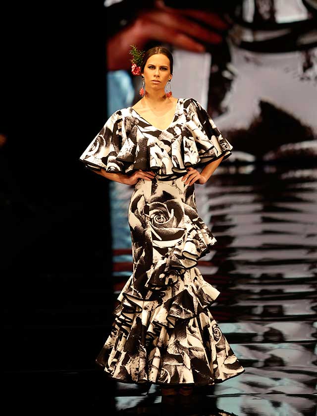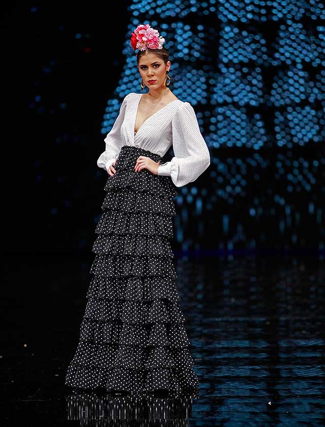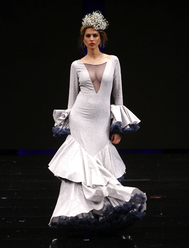 Cristina García: La colección «Mi Dolores» está inspirada en un amor de los de antes. Desde la pureza de dos jóvenes que se conocen, representada en el color blanco, hasta la pérdida del amor sólo separado por la muerte, representado en el color negro, pasando por la dulzura de los primeros besos (amarillo y melocotón) y la pasión de sus cuerpos (rosas y rojos). (J. M. Serrano / Raúl Doblado)