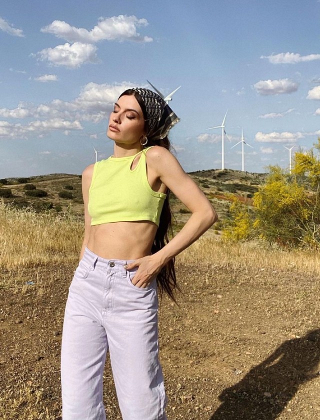 María Valdés con pañuelo de estilo pirata en un look de calle